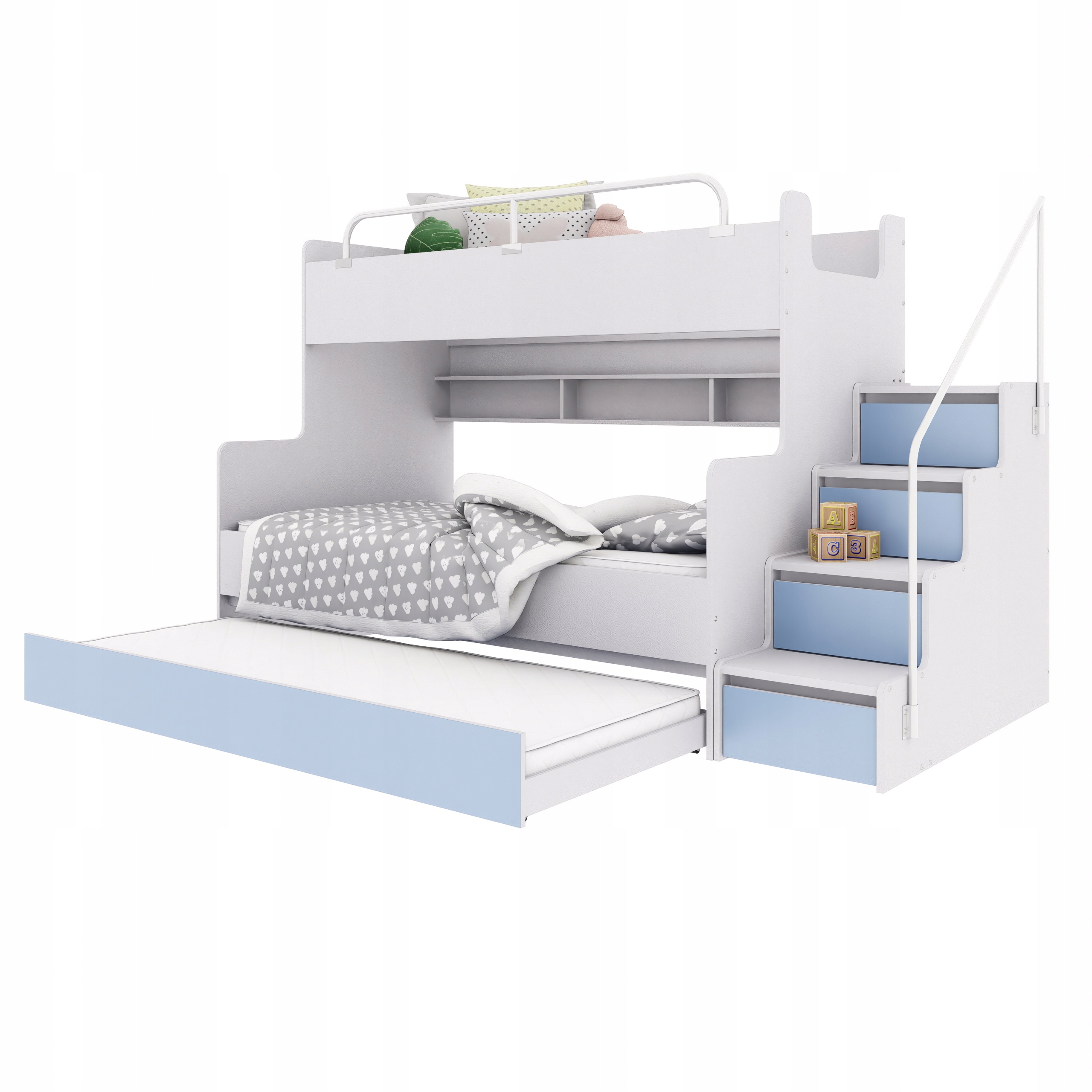 Двухъярусная кровать KIKI 3 MAX с дополнительным спальным местом на 3/4 человека - синий коврик