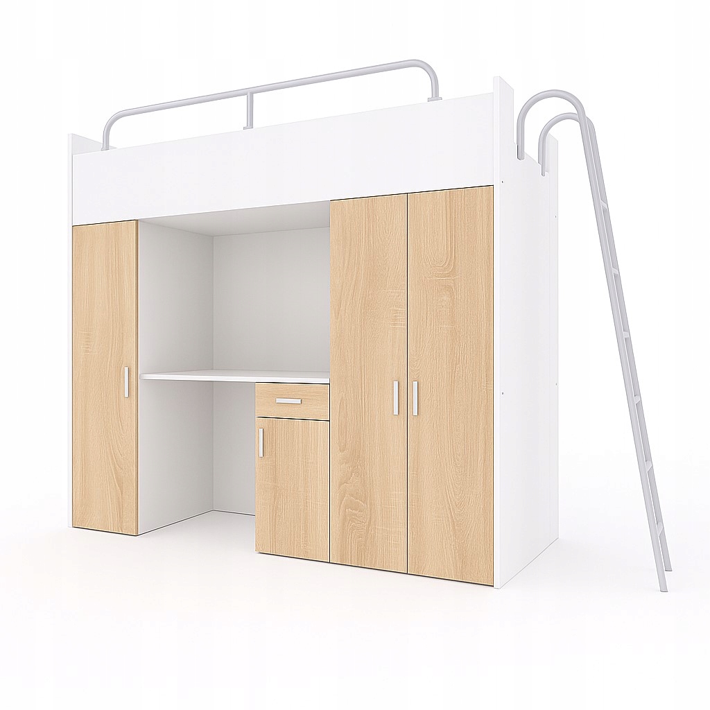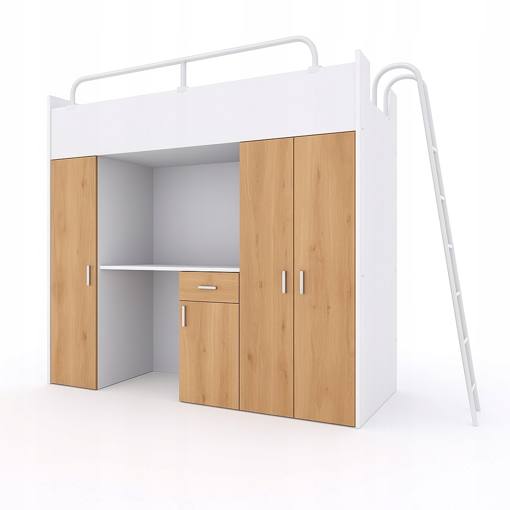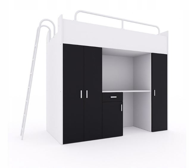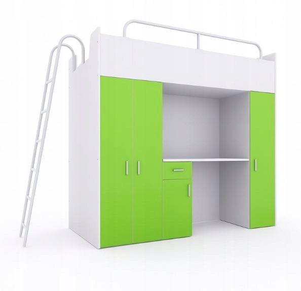 Двухъярусная кровать KIKI с письменным столом и лестницей – идеальное решение для детской или подростковой комнаты. Он сочетает в себе функциональность, комфорт и экономию места в одном современном предмете мебели. Наверху находится удобная безопасная кровать с прочными поручнями. Под ним находится просторный письменный стол с полками и отсеками для хранения вещей — идеально подходит для учебы, работы или творчества. Сбоку имеются устойчивые ступеньки, которые обеспечивают удобный и безопасный доступ наверх и при этом занимают мало места. КИКИ — это продуманная конструкция, которая помогает поддерживать порядок и максимально эффективно использовать пространство в комнате. Модель KIKI5 очень похожа на версию KIKI4 - однако разница в том, что в представленной версии полка имеет закрытые фасады, а в KIKI4 полка открыта.