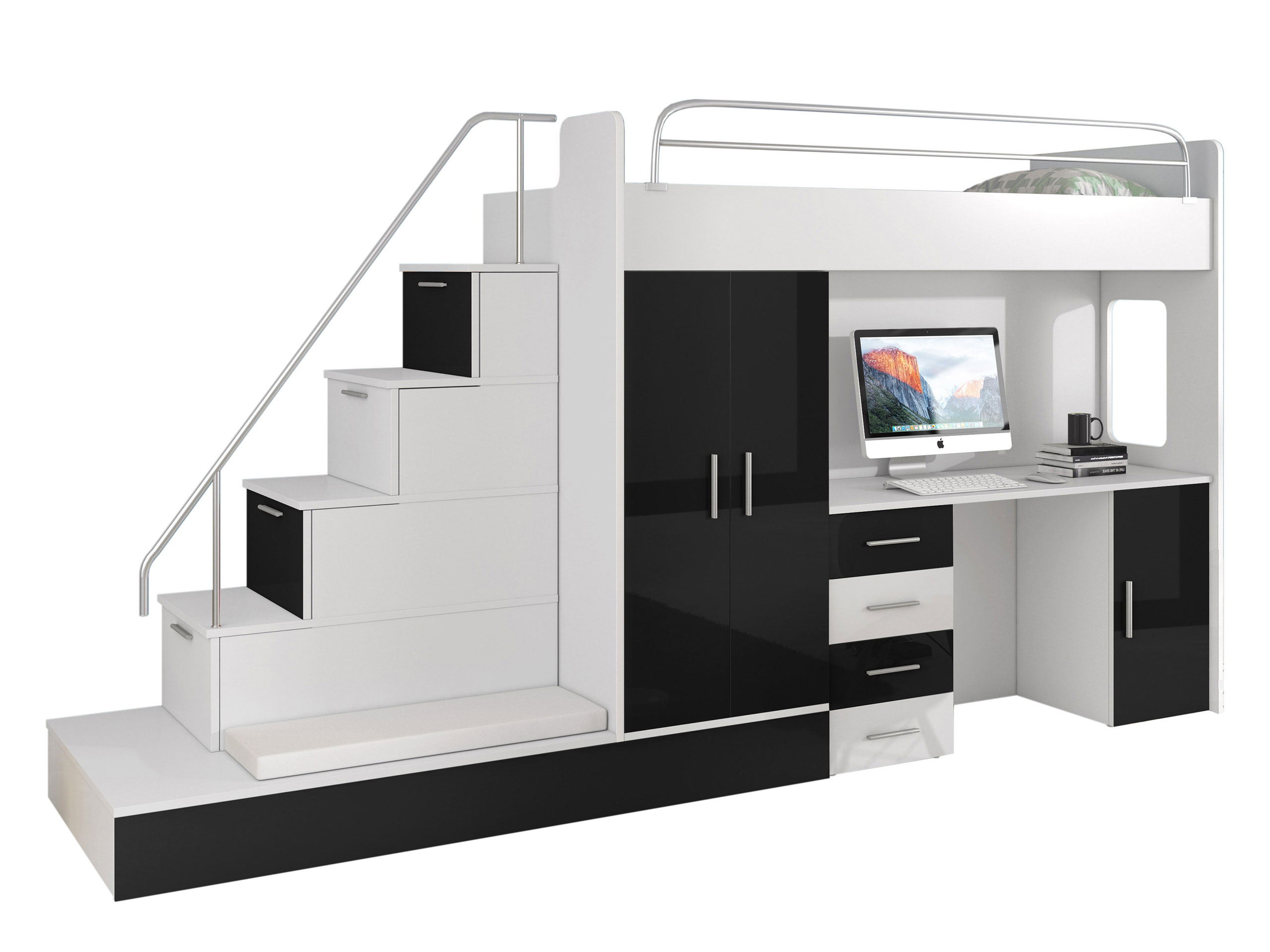 Кровать отличается современным дизайном и точным исполнением, обеспечивающим исключительно хороший сон и гарантию безопасности и уверенности в том, что ваш ребенок проснется отдохнувшим. Фасады гарнитура выполнены из глянцевого мебельного МДФ насыщенных цветов, что позволит подобрать мебель к любому помещению. Верхняя спальная поверхность и ступеньки рядом с кроватью оборудованы перилами, которые защитят ребенка от выпадения.