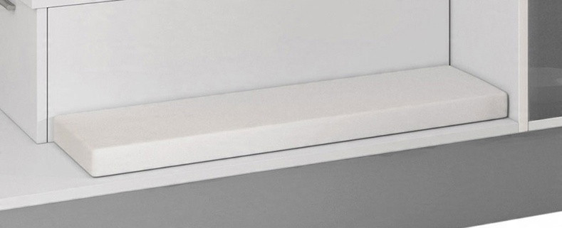 Корпус кровати изготовлен из устойчивого к царапинам белого ламината толщиной 16 мм. Верхняя направляющая проходит по всей длине кровати.