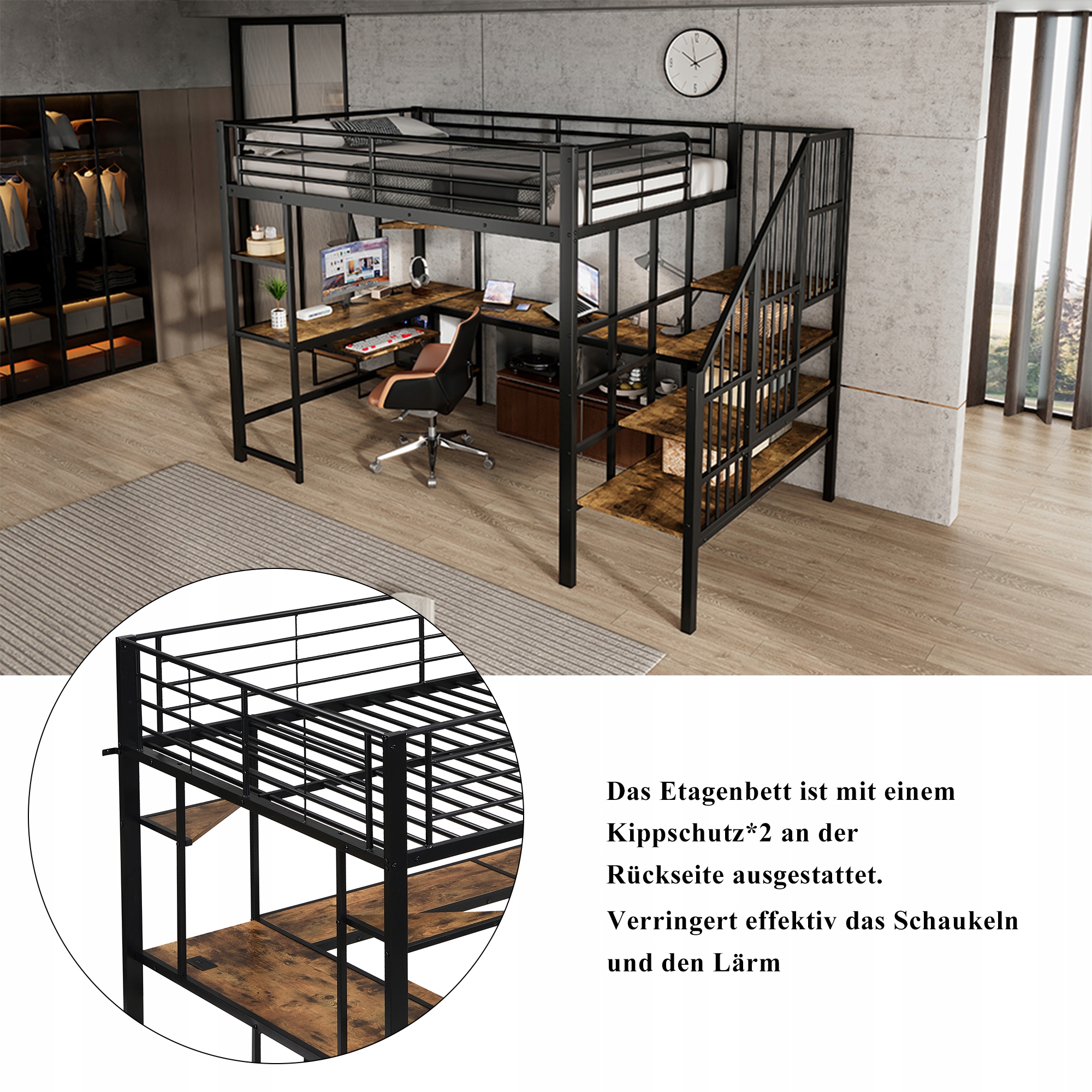 - Эта универсальная железная кровать сочетает в себе функциональность, безопасность и современный комфорт – идеальное дополнение для самых разных комнат, а также для детей и подростков! Он оснащен удобной и безопасной угловой ступенькой, обеспечивающей легкий и безопасный доступ. Встроенный порт зарядки обеспечивает практичное повседневное удобство и идеально подходит для зарядки ваших устройств без необходимости использования кабелей. Благодаря прочному решетчатому каркасу кровать гарантирует безопасный и комфортный сон, а две защиты от опрокидывания эффективно стабилизируют кровать – прочную основу для любого использования. Особенно практично: письменный стол с полкой для клавиатуры и местом для хранения вещей создает идеальную зону для работы или учебы, которая идеально вписывается в общую структуру кровати. Независимо от того, расположен ли он в спальне, общежитии или на рабочем месте – он прекрасно вписывается в различные пространства и гибко адаптируется к потребностям разных пользователей.