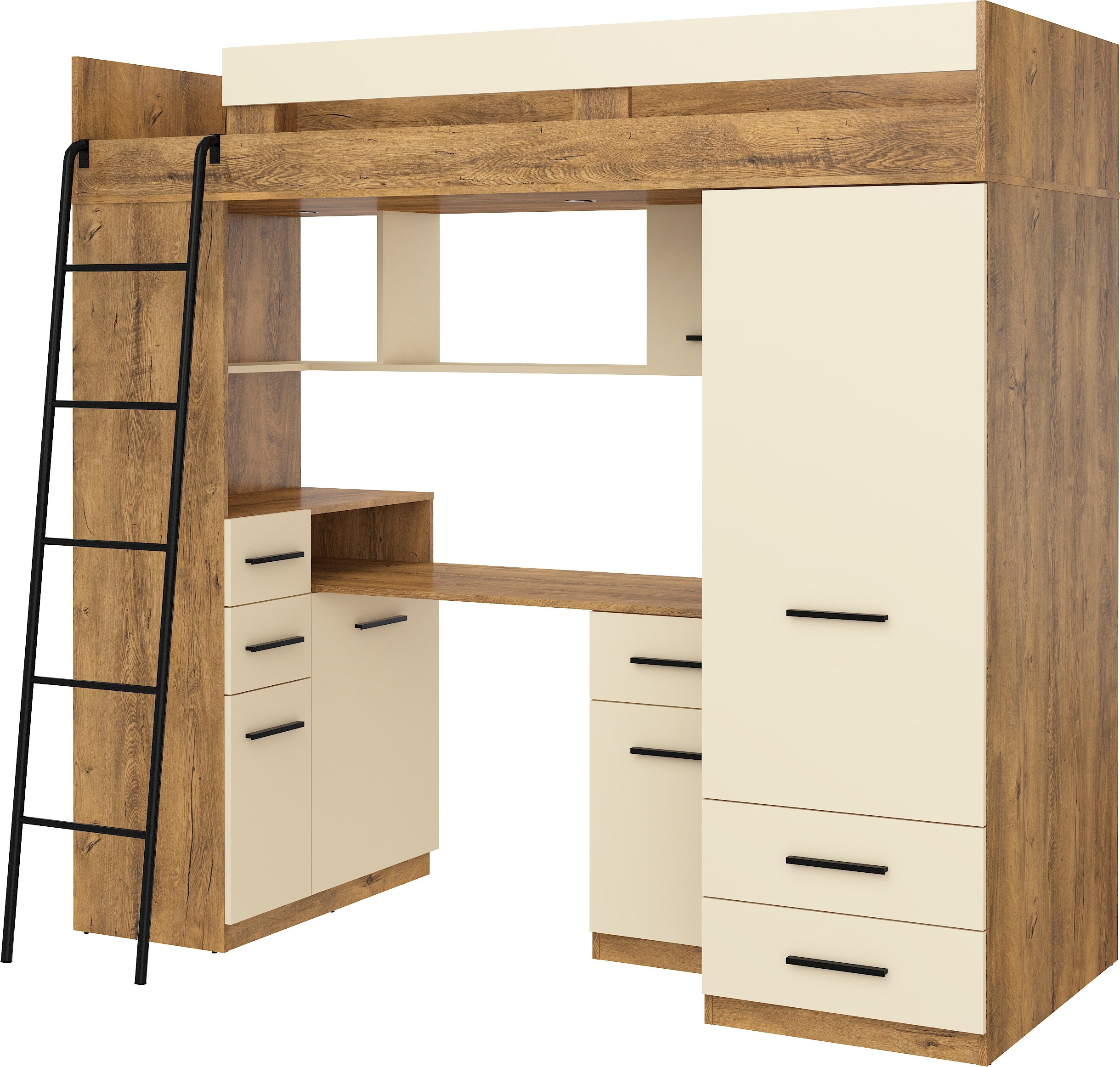 Кровать-мезонин серии СМИК – предмет мебели, который позволит практично обставить детскую комнату. Он очень функциональный и вместительный. В номере установлена двухъярусная кровать, к которой ведет безопасная лестница. Кроме того, в мезонине достаточно места для хранения вещей благодаря гардеробу и шкафчикам. Широкая столешница служит письменным столом, позволяя комфортно учиться.