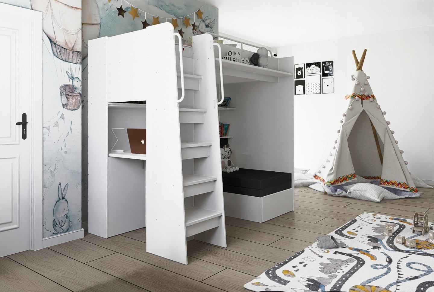 Современный антресоль JSM7 сочетает в себе все важные особенности, учтенные при проектировании детской комнаты, а именно: