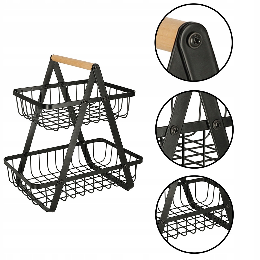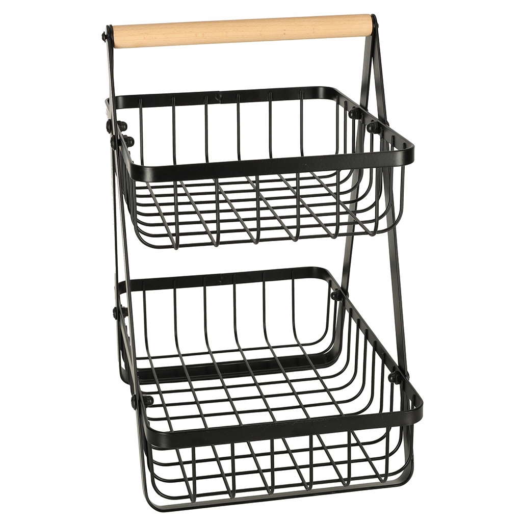 БАСК ДЛЯ ФРУКТОВ, ЧЕРНАЯ ДВУХЭТАЖНАЯ МЕТАЛЛИЧЕСКАЯ ДЕРЕВО