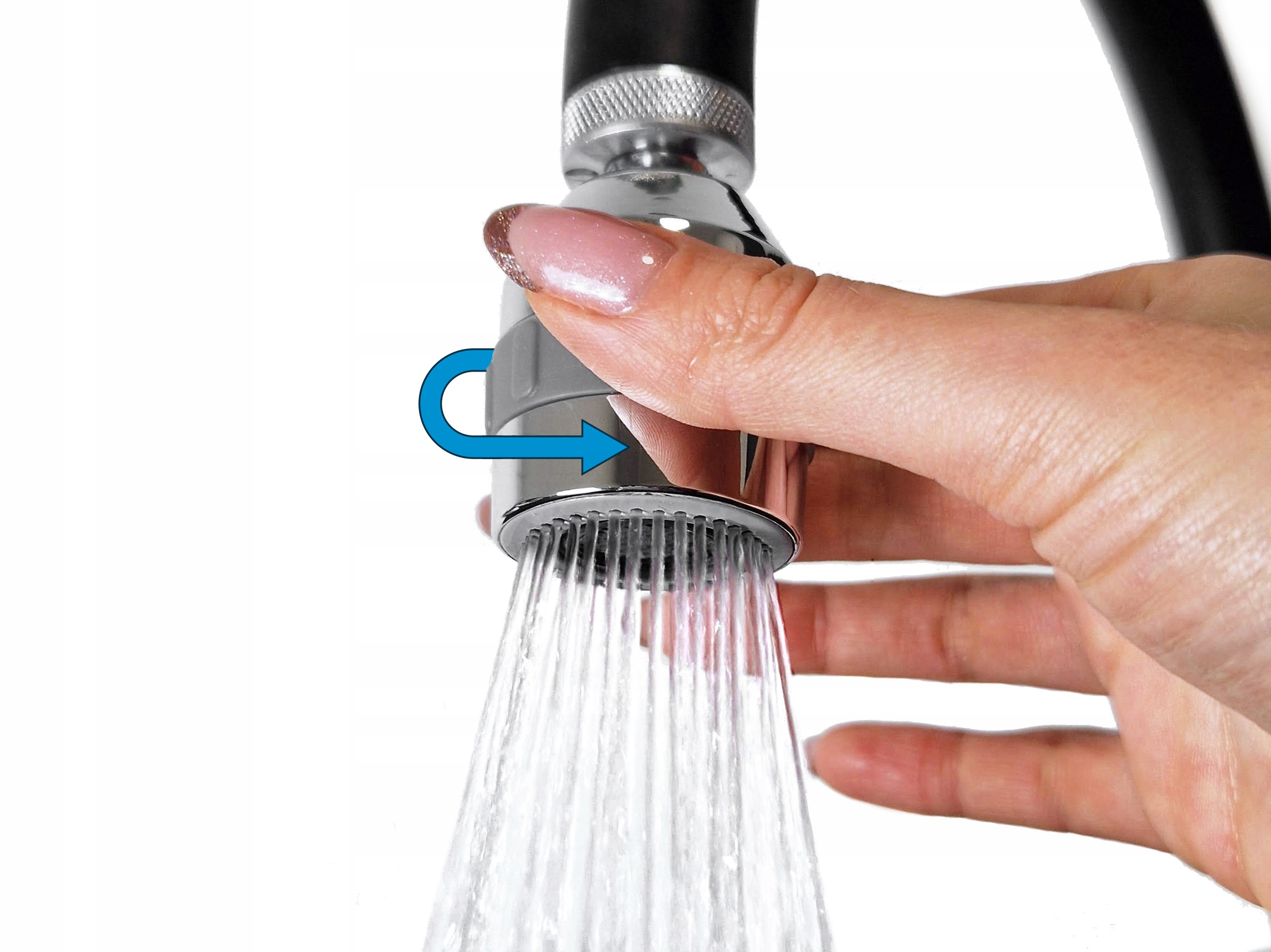 Тип струи можно изменить в любой момент, повернув аэратор одной рукой.