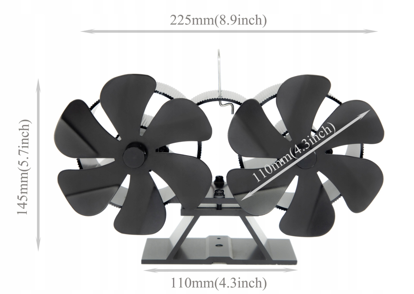Двухголовочный каминный вентилятор с тепловым приводом уникален тем, что ему не требуется внешний источник питания или аккумулятор. Он работает за счет тепла, выделяемого печью, что экономит электроэнергию. Это означает меньшие счета за электроэнергию и меньшее воздействие на окружающую среду.