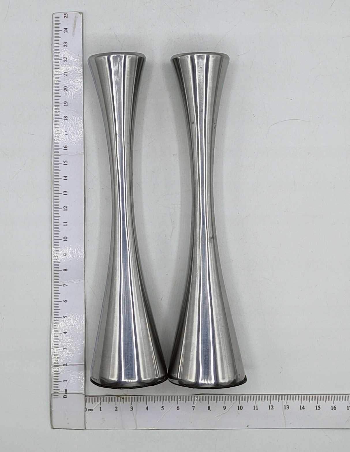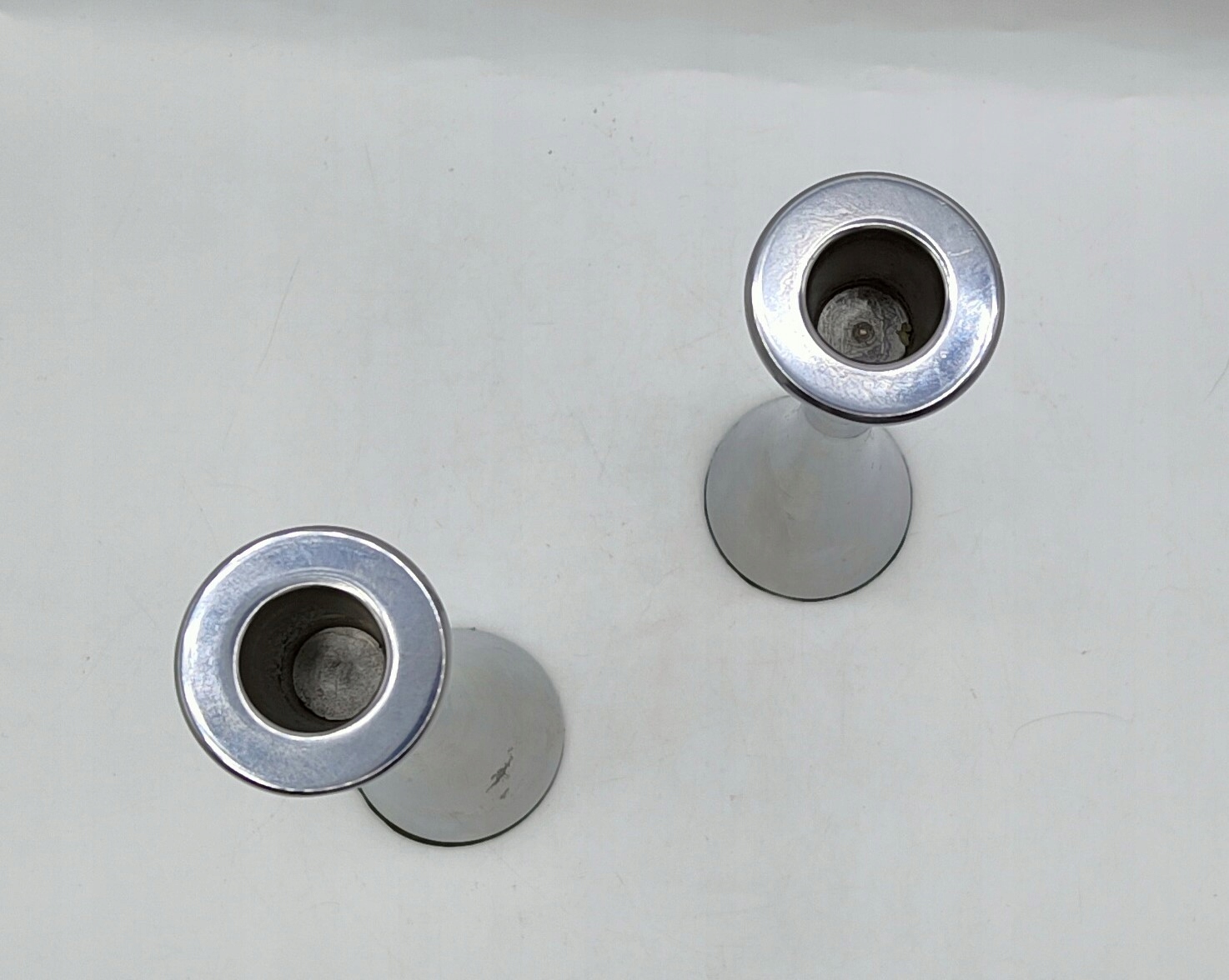DWA ciekawe stare aluminiowe świeczniki 20cm