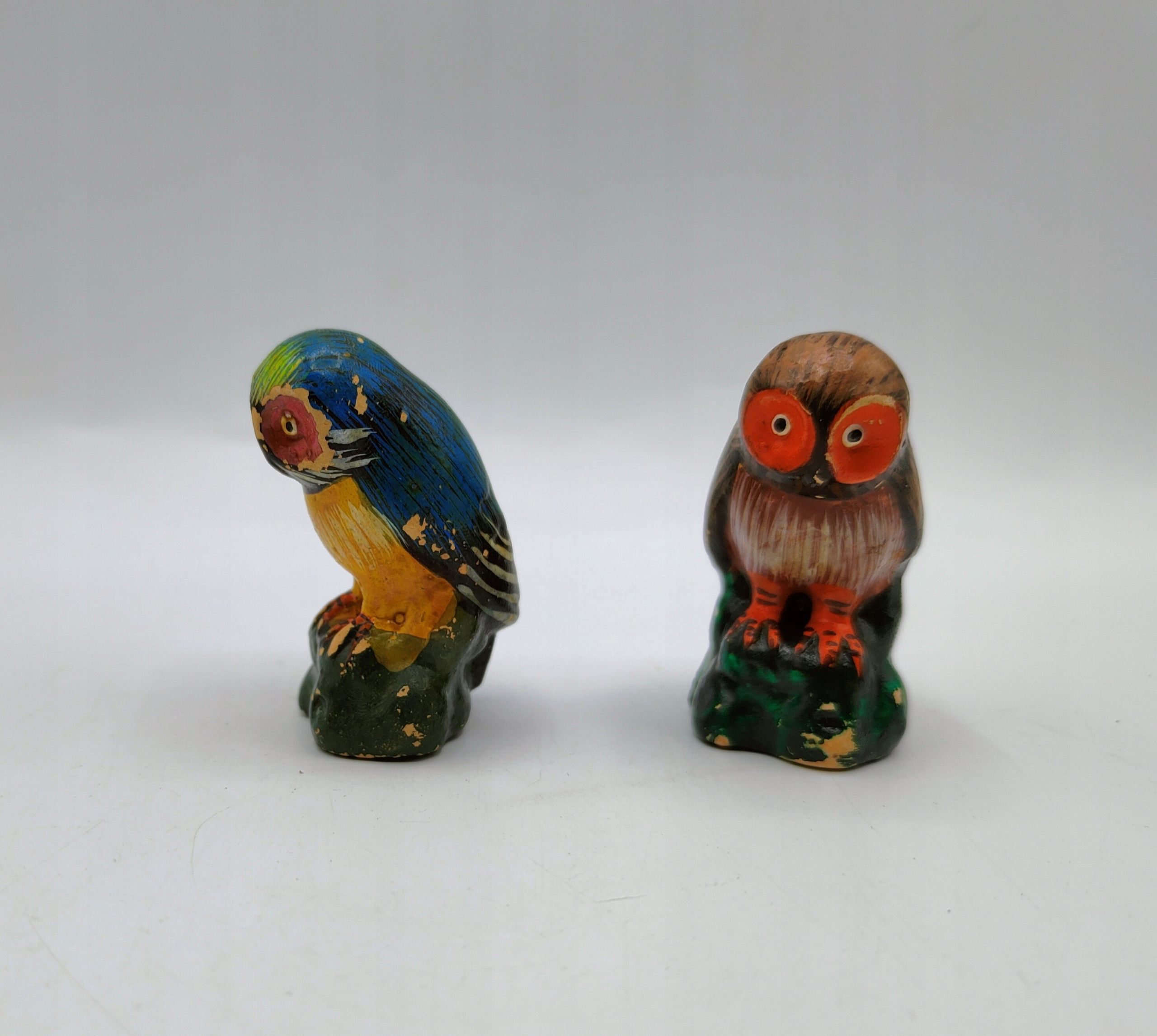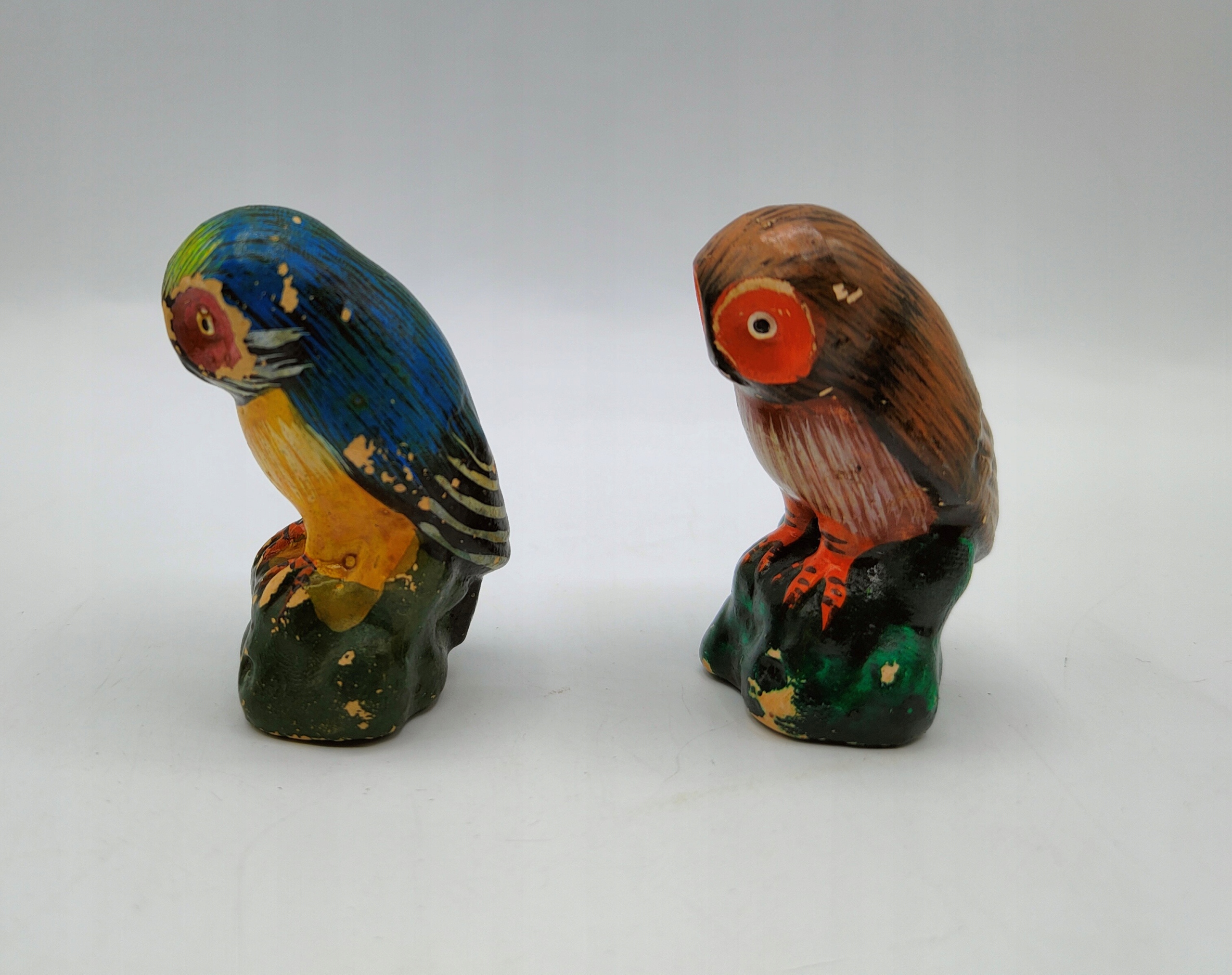 Dwie stare kolorowe sówki, sowy 2 figurki