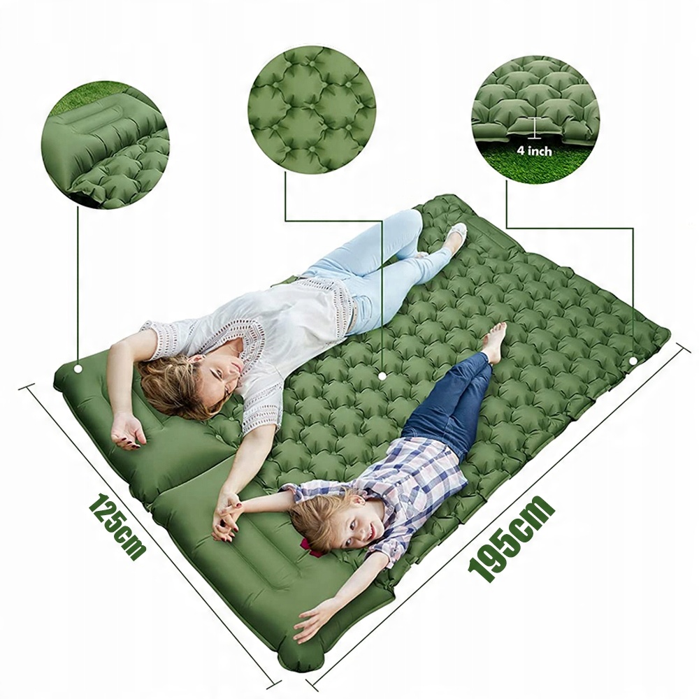 Кемпинговый спальный коврик для 2 человек, надувная подушка, сотовая воздушная подушка, износостойкий зеленый, 195*125*10 см + сумка для хранения