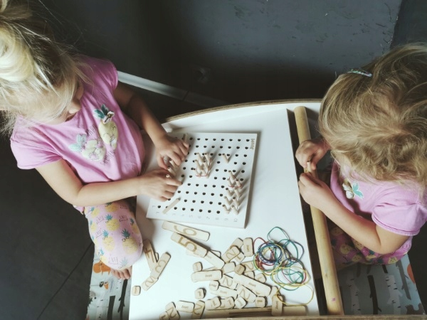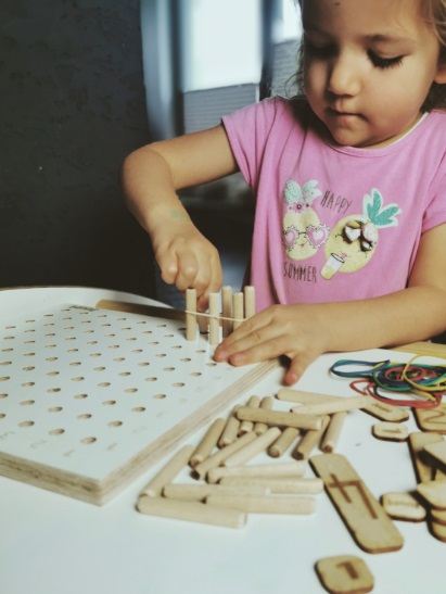 ➡️ С одной стороны находится доска с колышками, на которой можно учиться: