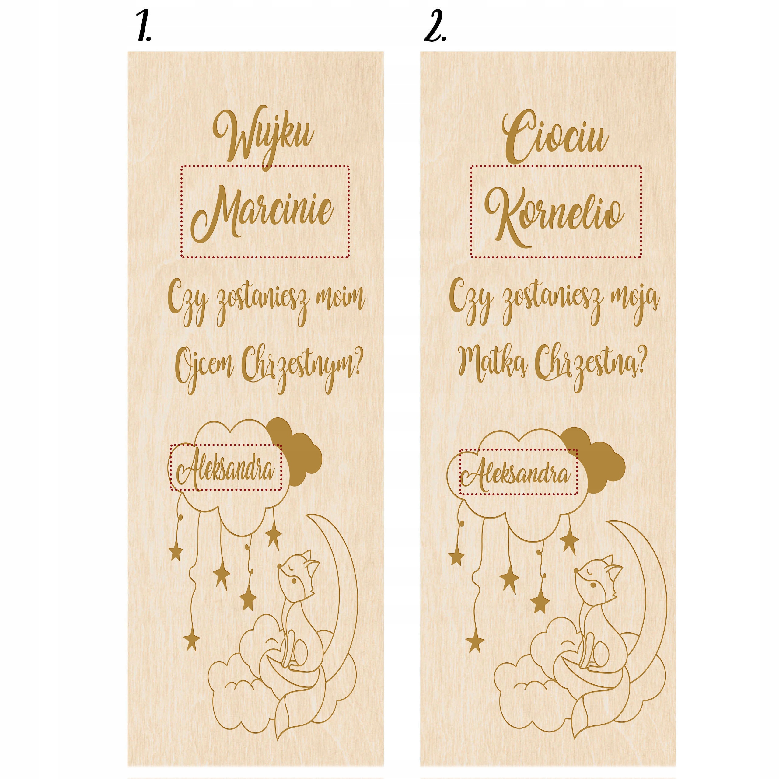 Коробка для вина — отличная идея, когда мы хотим задать очень важный вопрос. Гравировка на коробке – непростая просьба. Такой подарок подчеркивает важность события и ту роль, которую крестные родители сыграют для нашего ребенка.