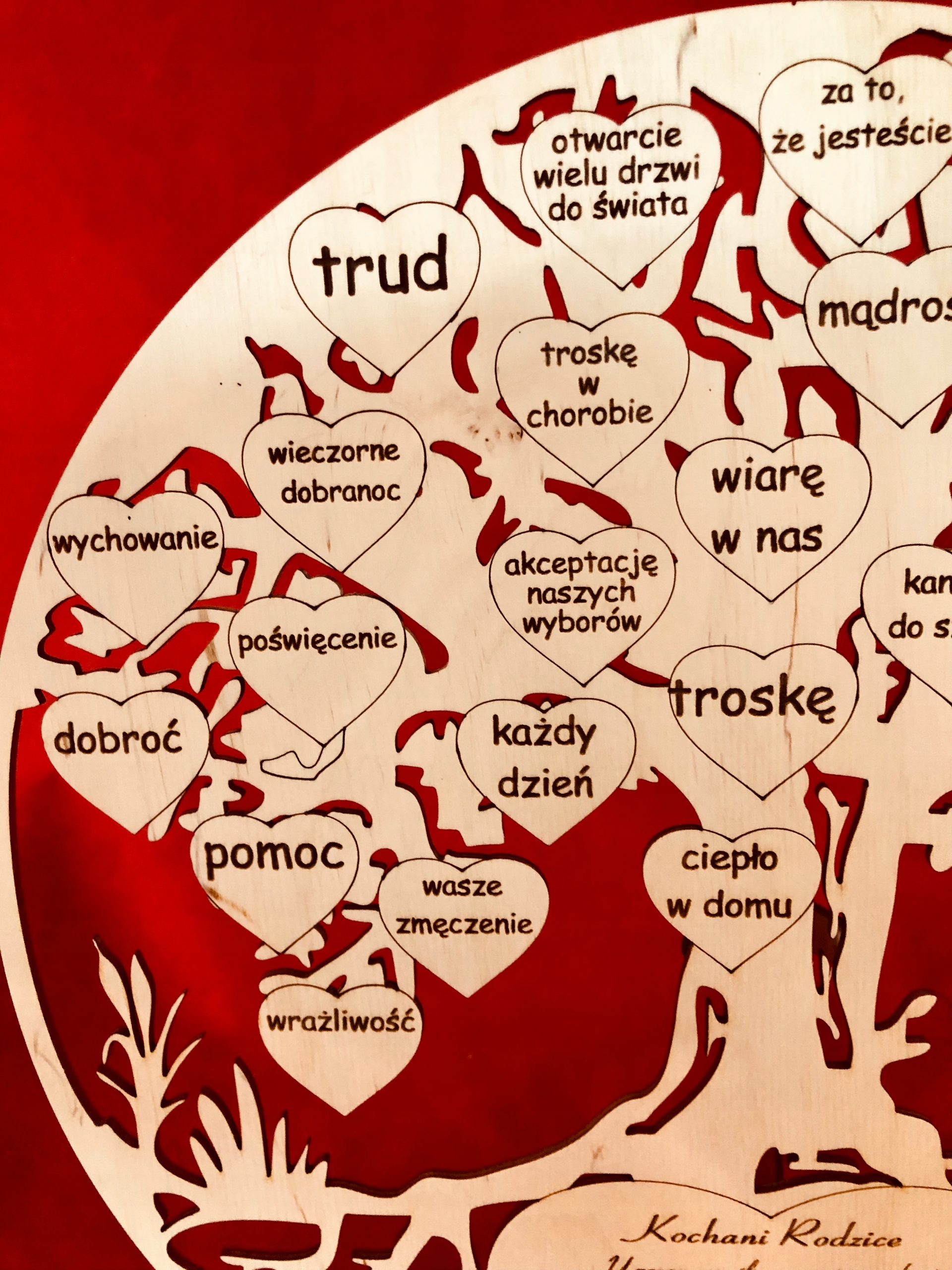 Красиво вырезанная фанера и выгравированное дерево с благодарностью родителям.