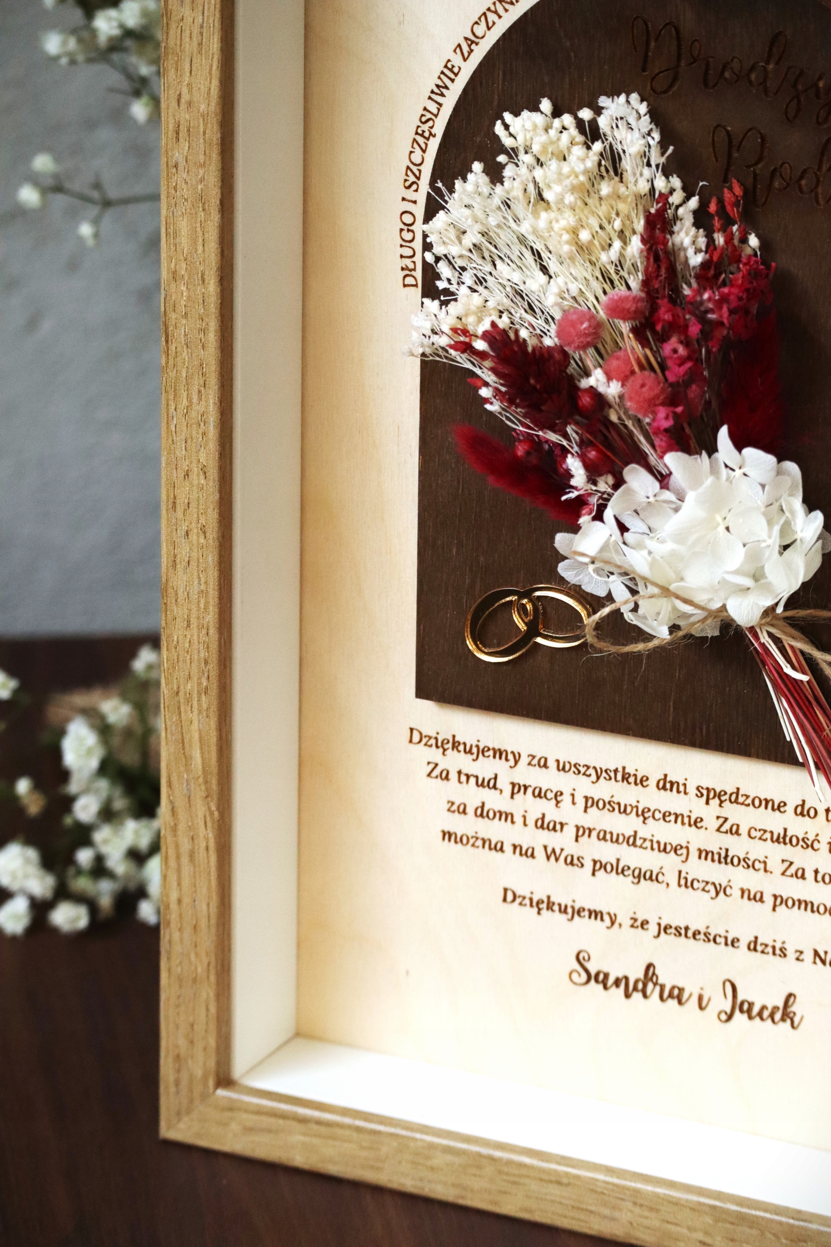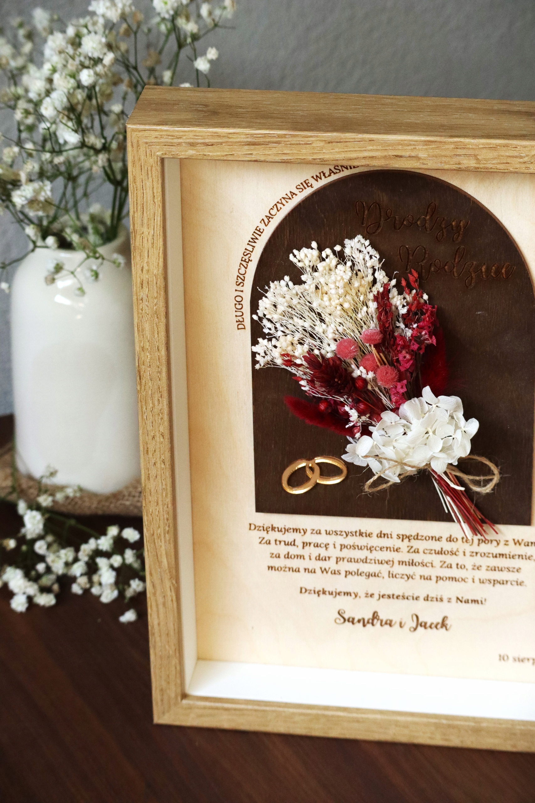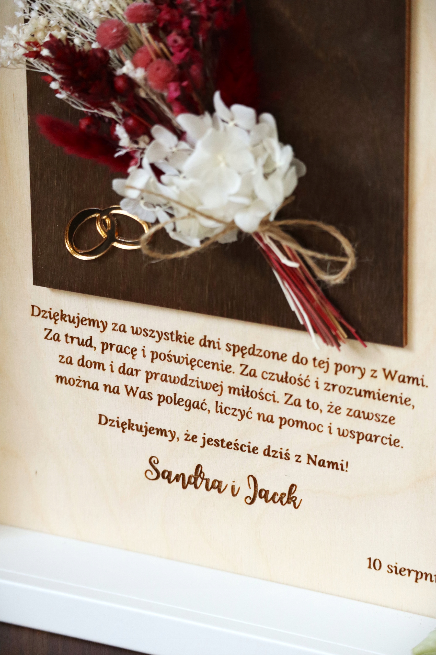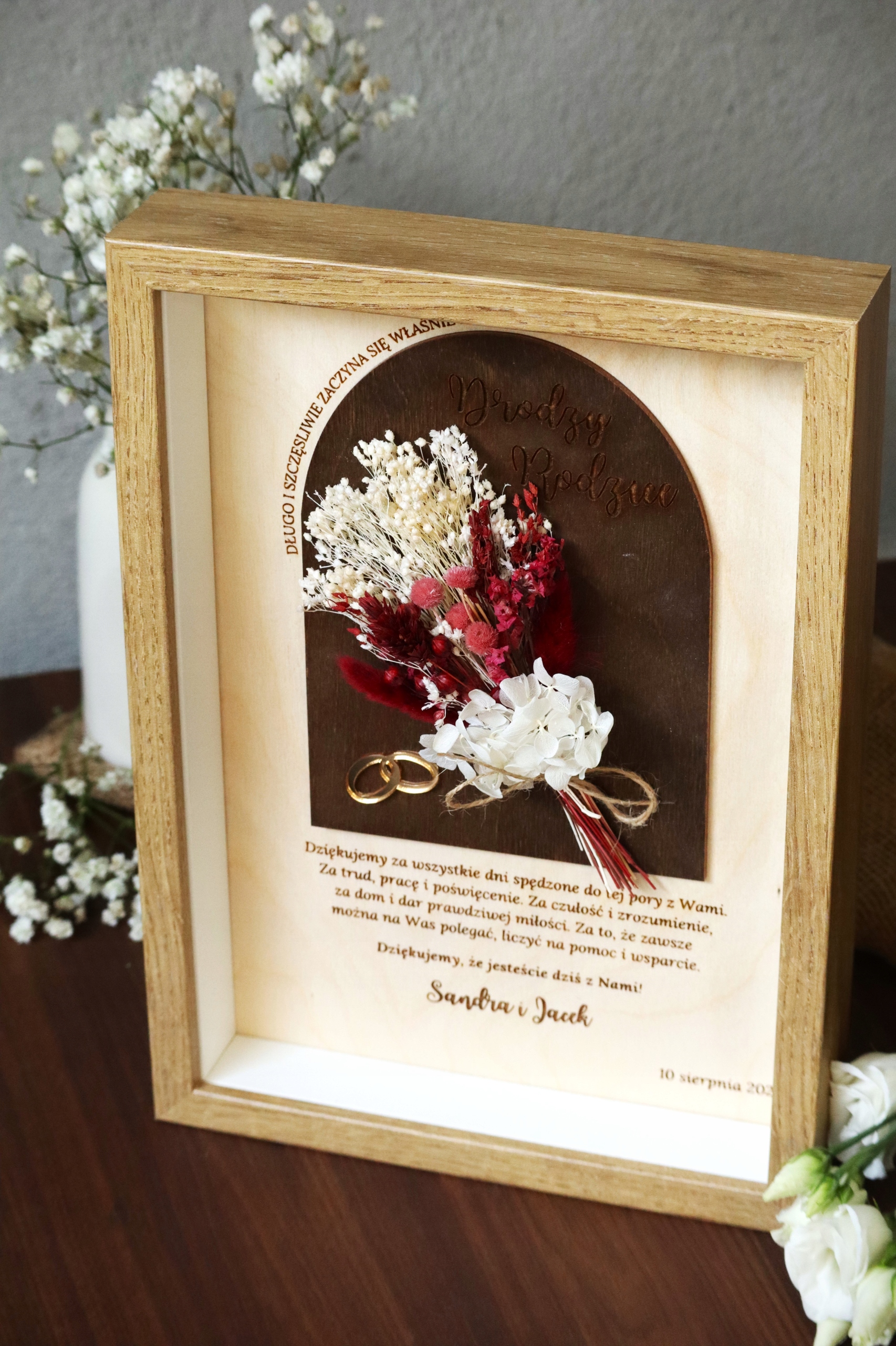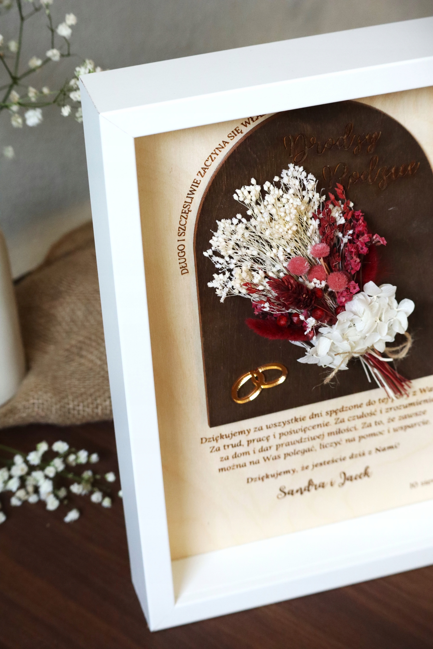 Уникальная премиальная рамка с благодарностью за свадьбу с букетом сушеных цветов! Память. Лазерная гравюра