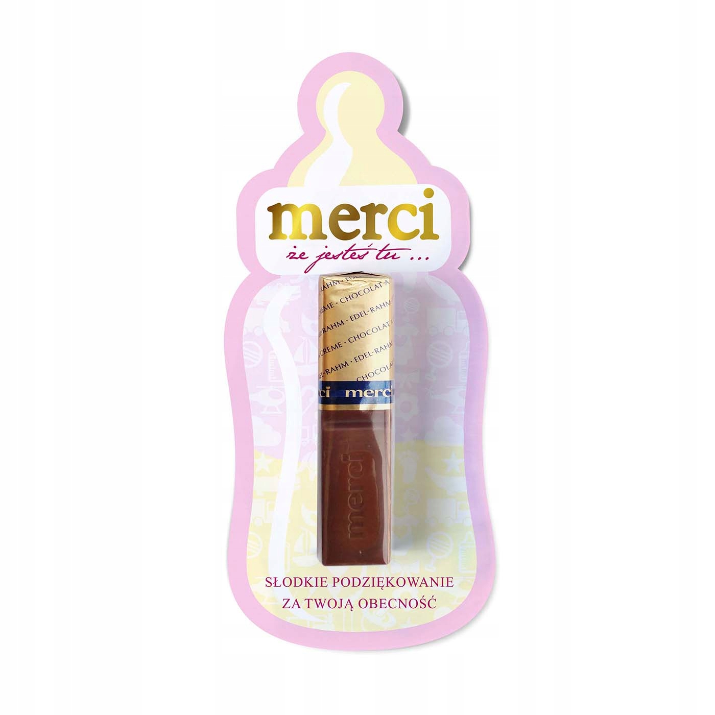 Оригинальная идея для благодарственного подарка в виде шоколадной подушечки. Красочная цифровая печать детской бутылочки, дополнительно вырезанная лазером, выполненная на плотной белой бумаге, станет приятным акцентом для гостей и красиво украсит стол на празднике.