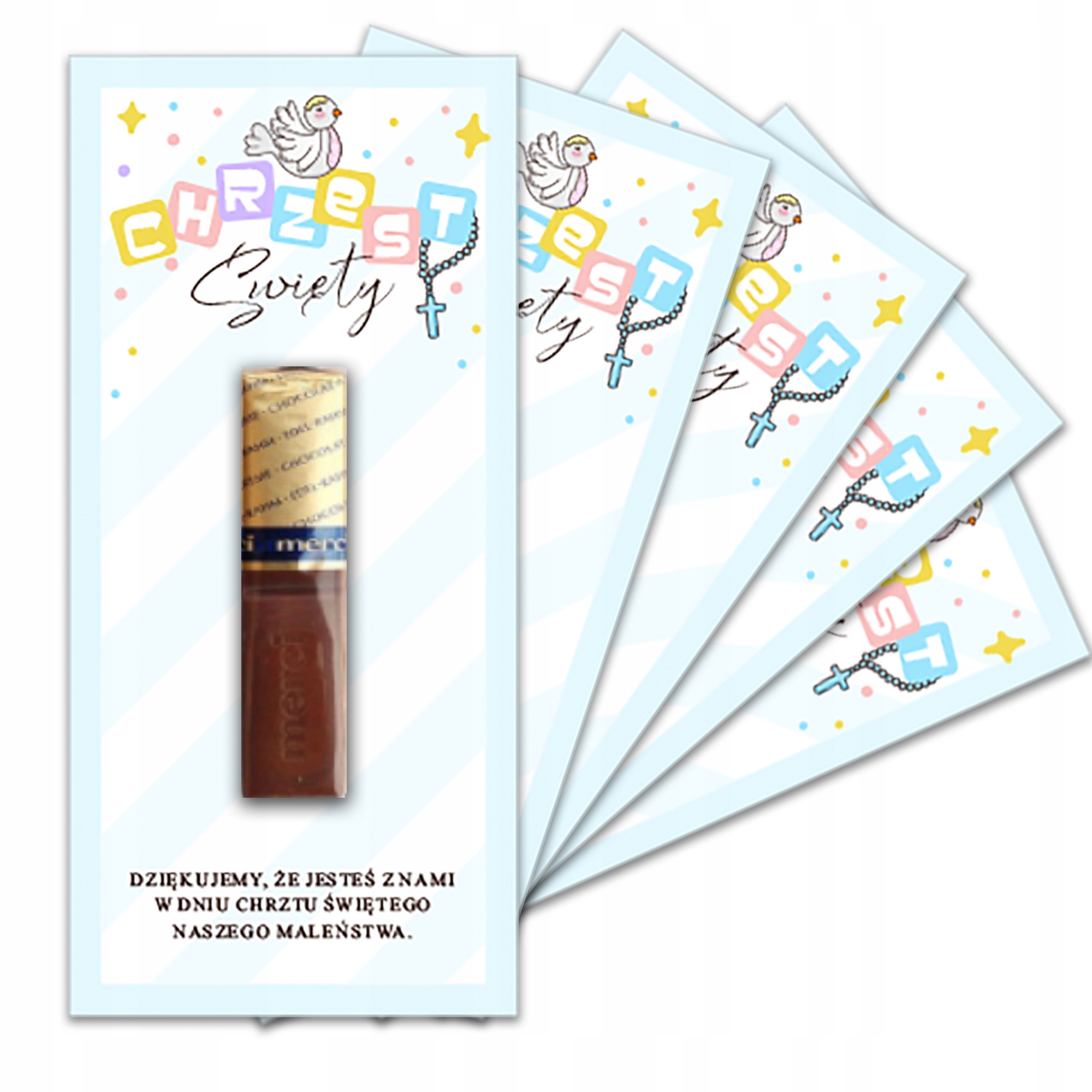 Оплачивая «Спасибо гостям за крещение MERCI 5 шт.», вы можете быть уверены, что данный товар из каталога «Спасибо» будет доставлен из Польши и проверен на целостность. В цене товара, указанной на сайте, учтена доставка из Польши. Внимание!!! Товары для Евросоюза, согласно законодательству стран Евросоюза, могут отличаться упаковкой или наполнением.