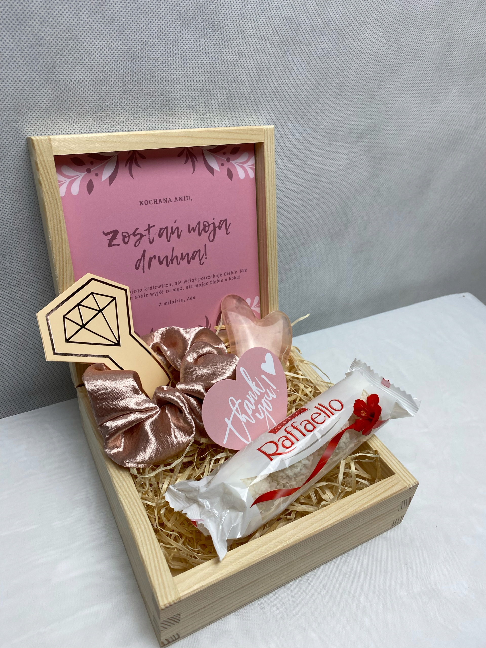 Вы ищете уникальный способ отблагодарить невесту за ее поддержку в самый важный день вашей жизни? Предлагаем элегантную коробочку в виде деревянной шкатулки - прекрасный подарок, полный благодарности и класса!