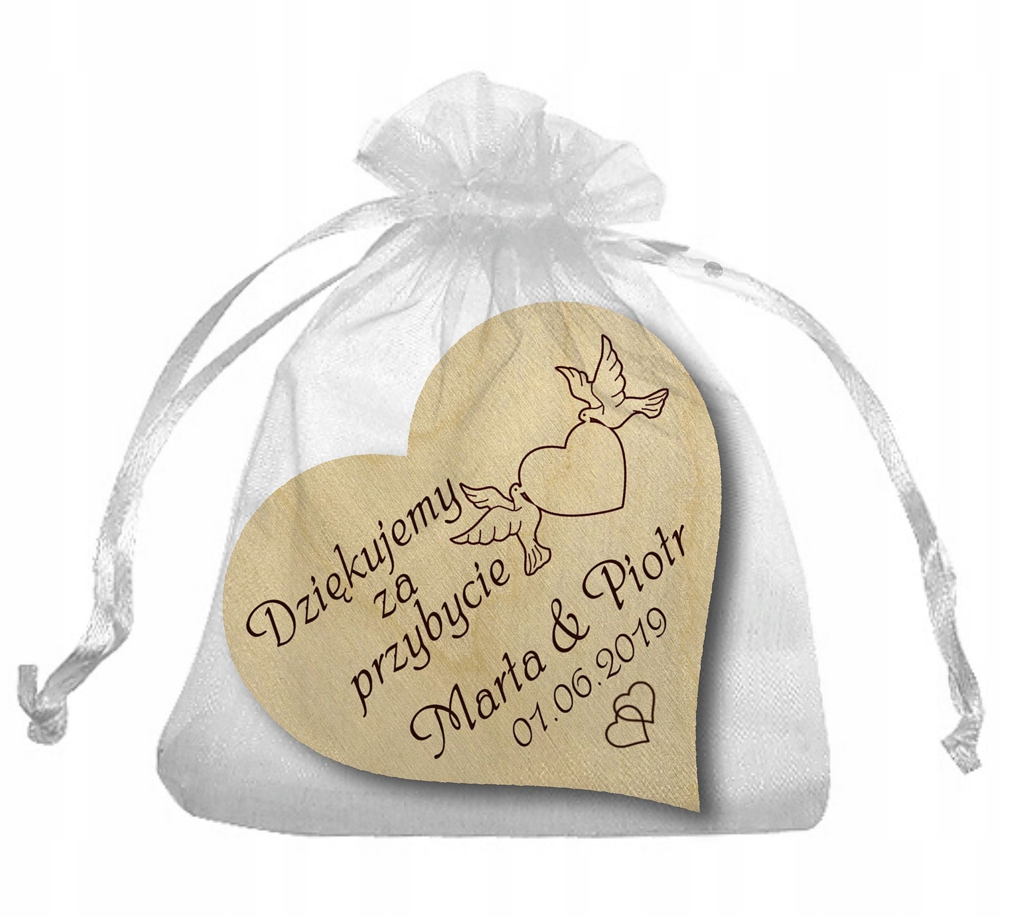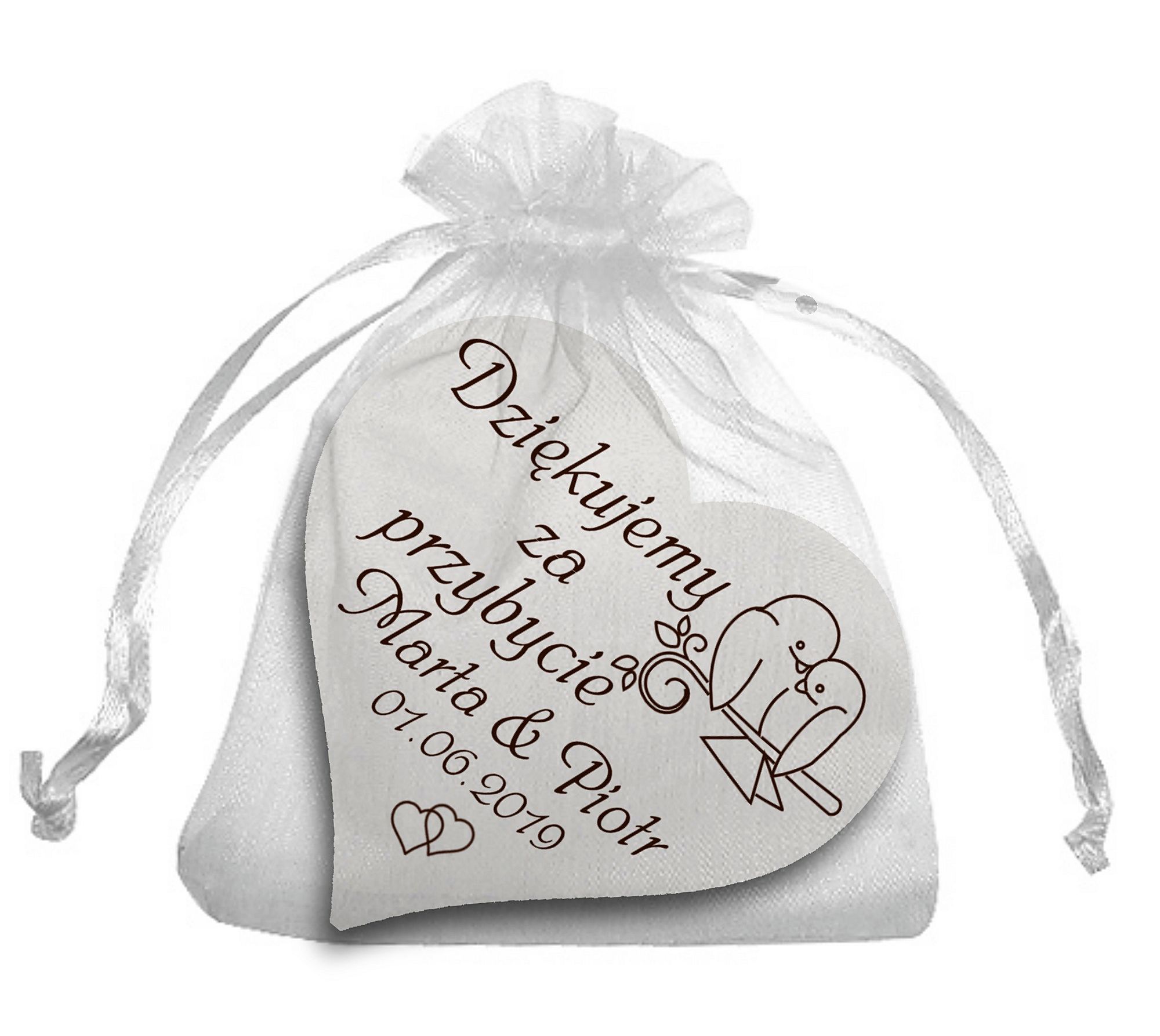 Благодарности упакованы в элегантный белый мешочек из органзы.