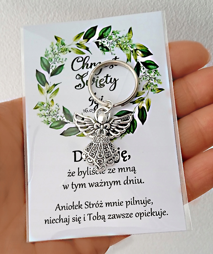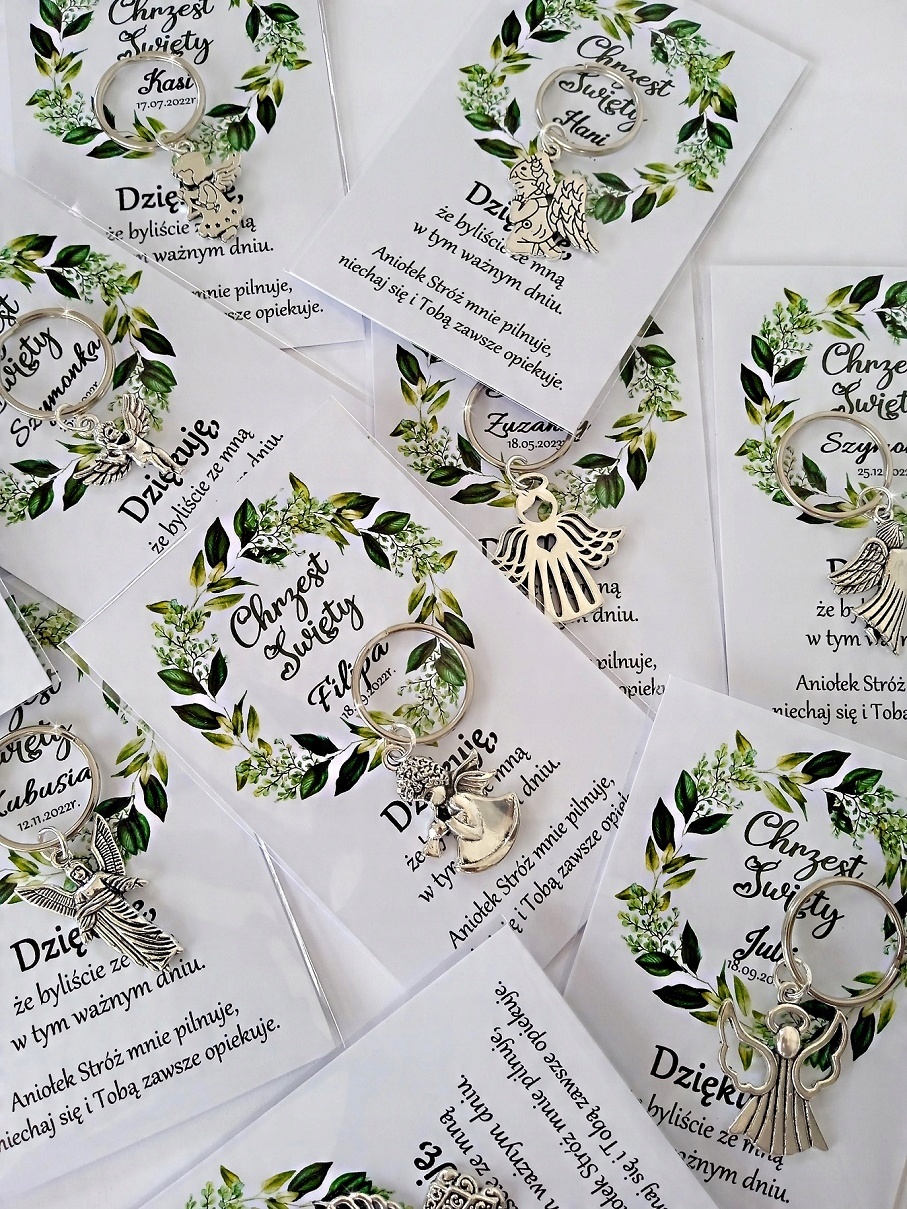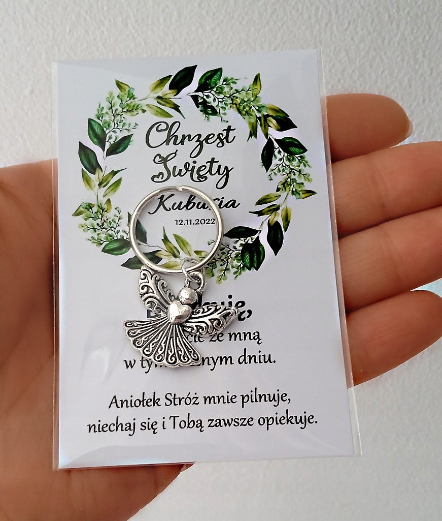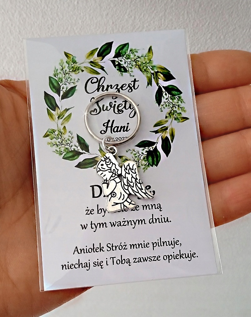 СУВЕНИР ПОДАРОК ДЛЯ ГОСТЕЙ ПО СЛУЧАЮ КРЕЩЕНИЯ - БЛАГОДАРИТЕЛЬНАЯ ОТКРЫТКА И БРЕЛОК В ФОРМЕ АНГЕЛА.