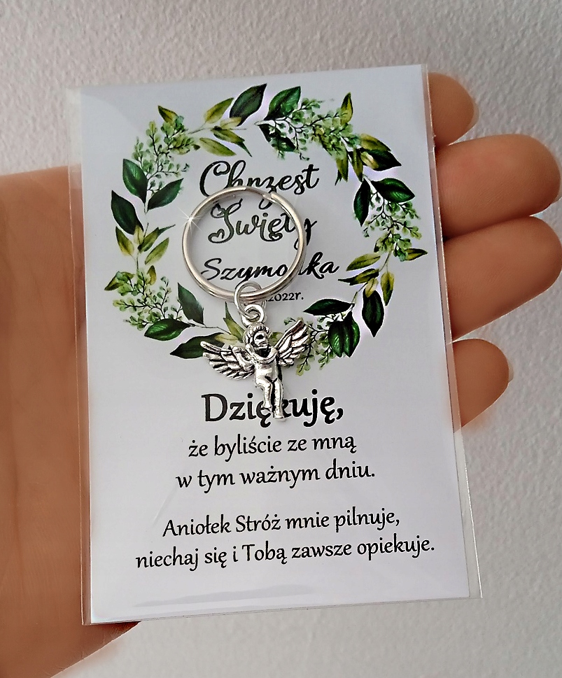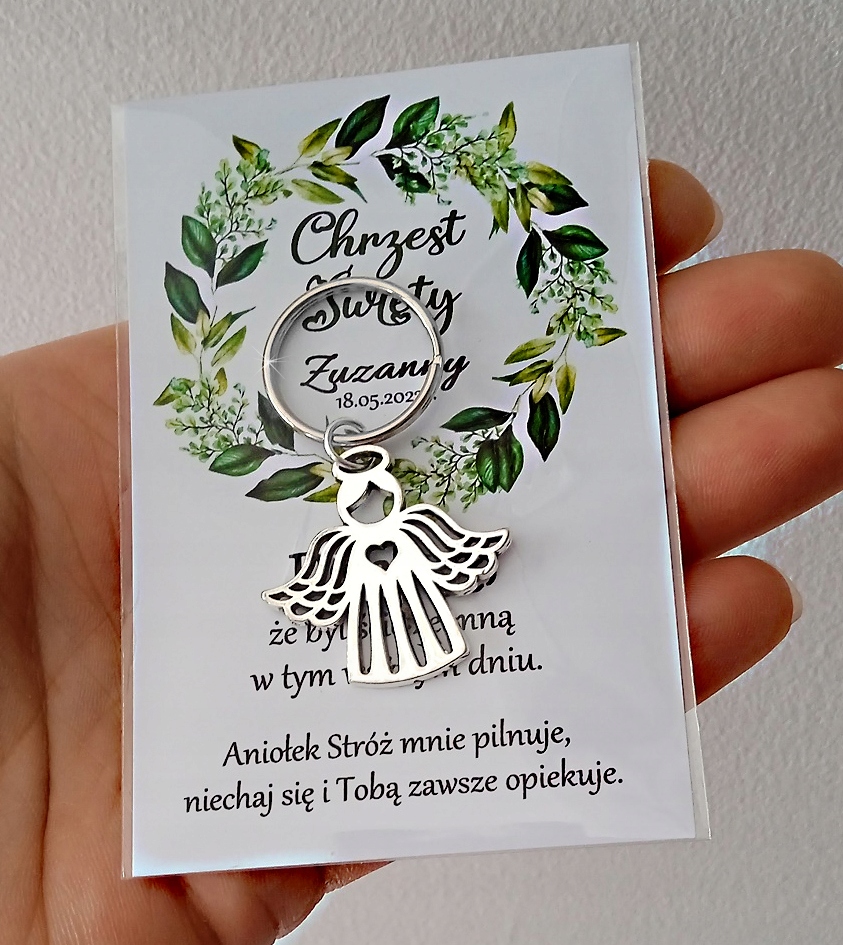 СУВЕНИР ПОДАРОК ДЛЯ ГОСТЕЙ ПО СЛУЧАЮ КРЕЩЕНИЯ - БЛАГОДАРСТВЕННАЯ ОТКРЫТКА И БРЕЛОК В ФОРМЕ АНГЕЛА.