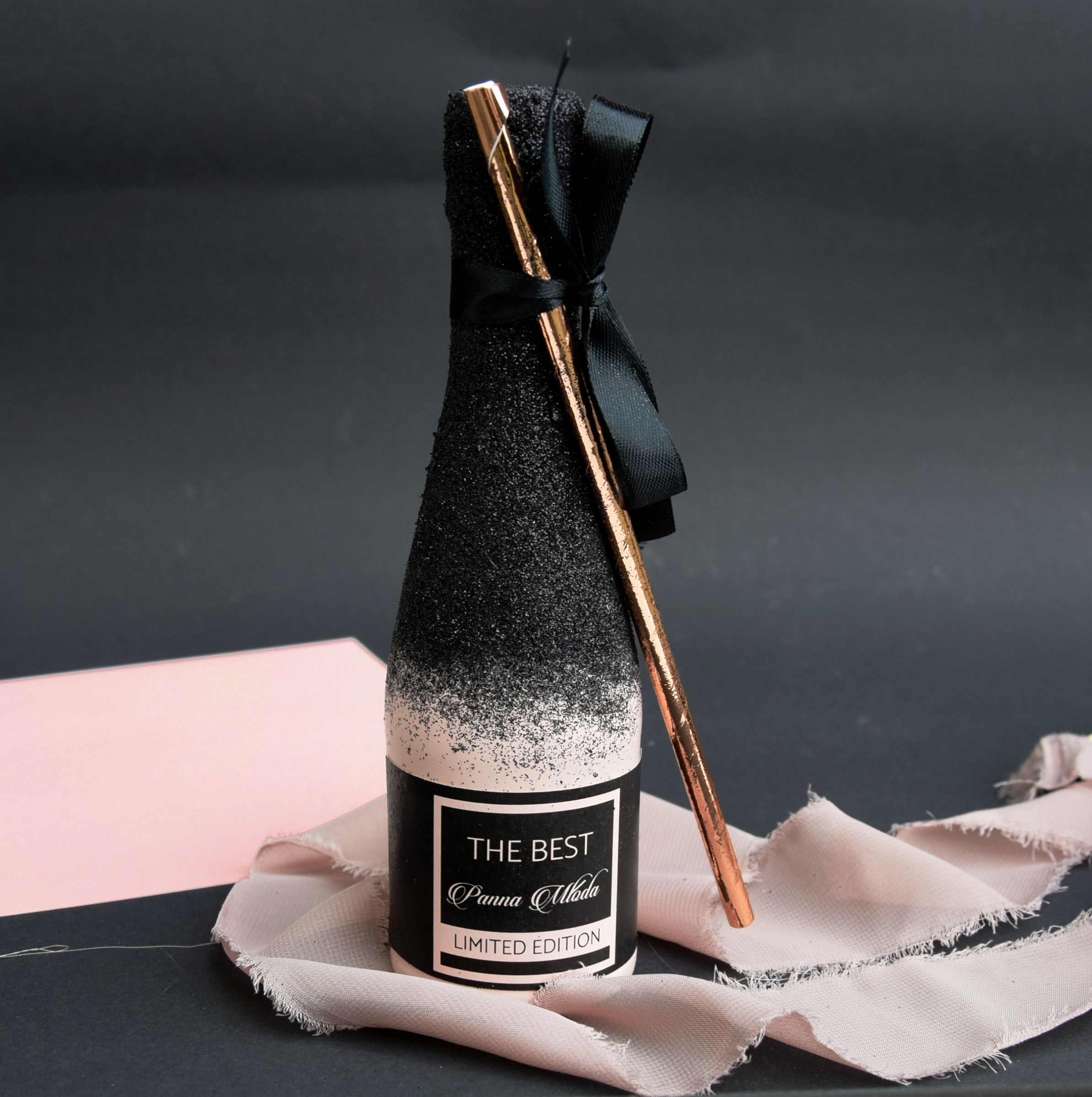 - мини-безалкогольное шампанское 200 мл, цвет: пудрово-розовое + черный блеск + бантик + этикетка + тубус.