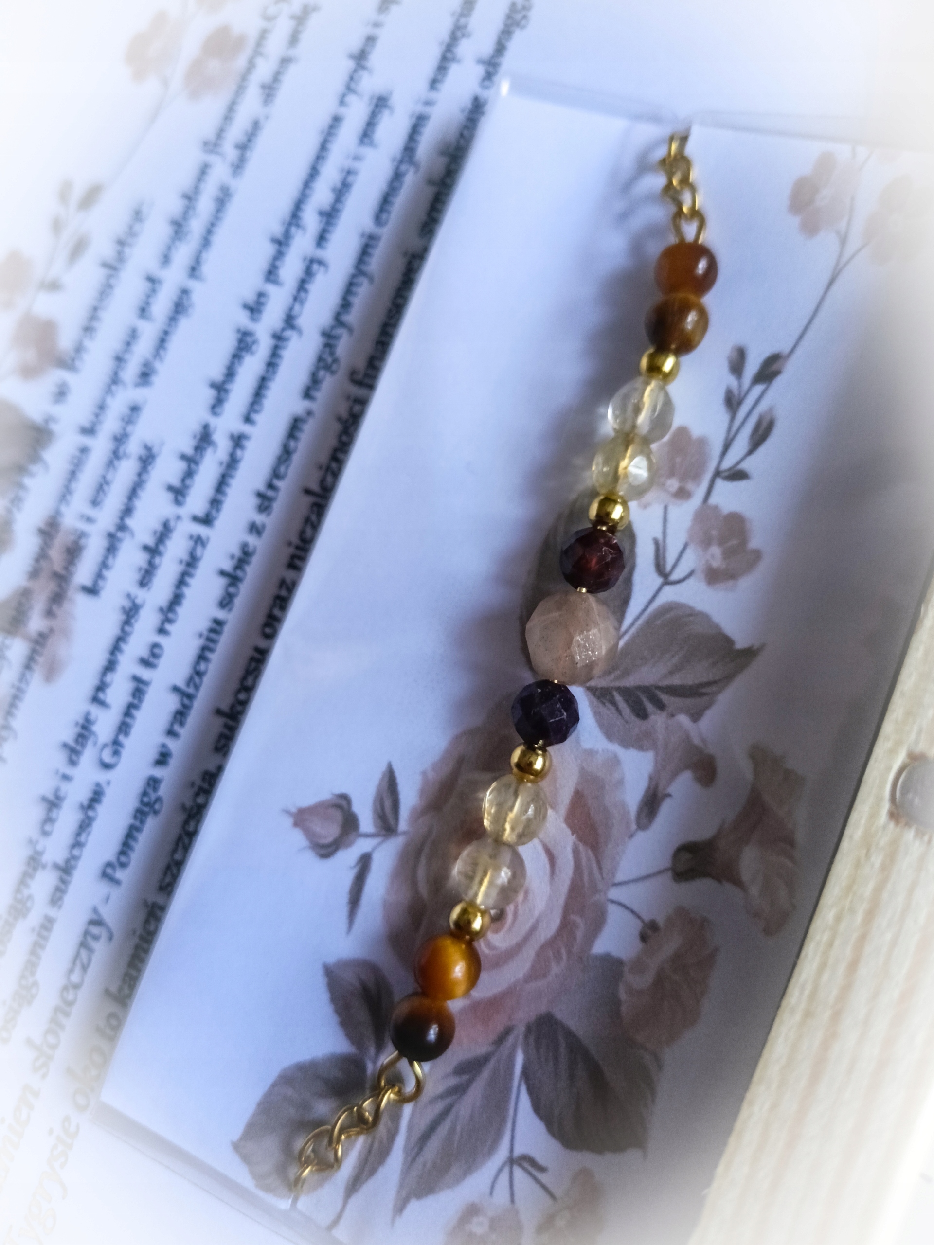Над каждому браслету находится описание используемых камней