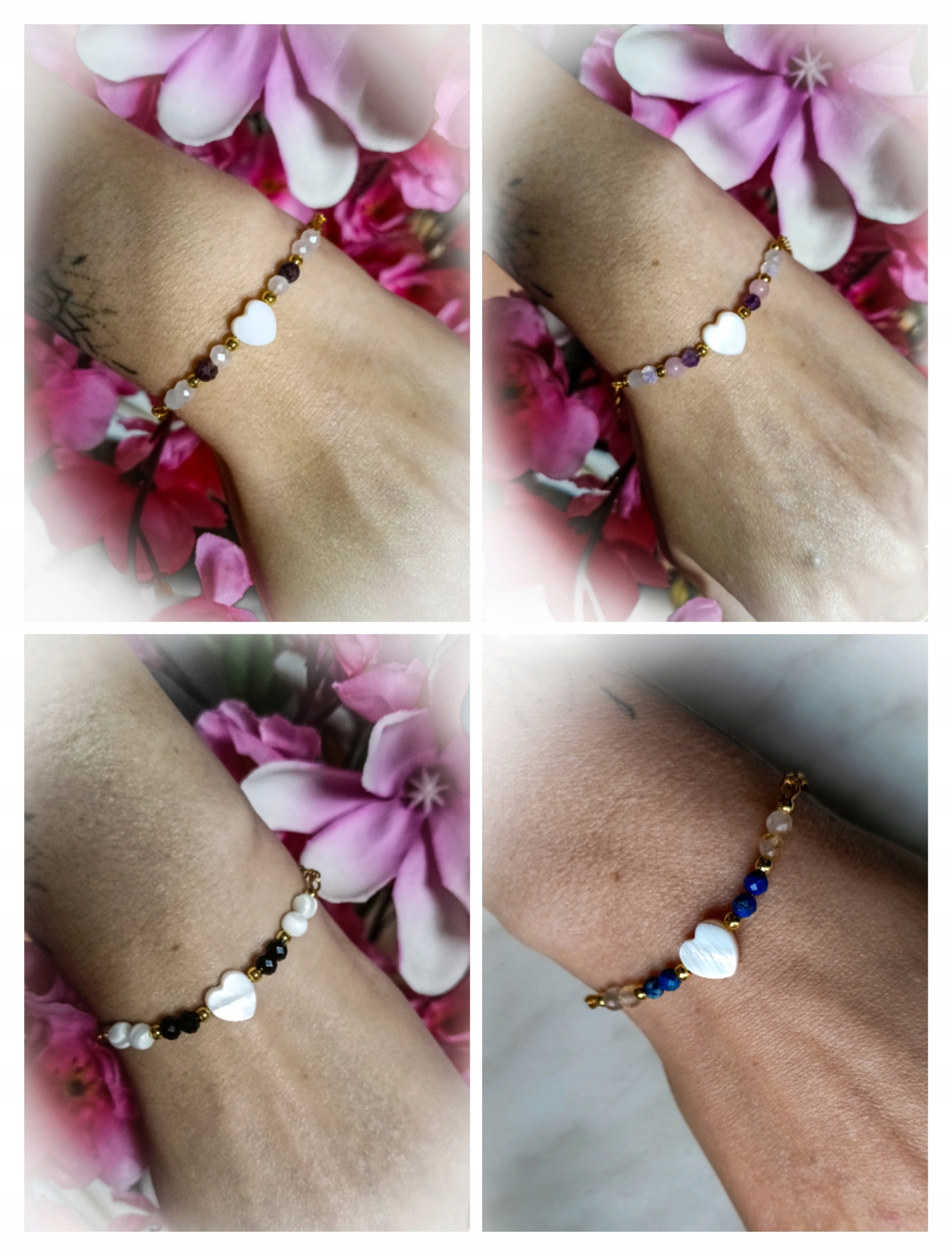 Каждый из браслетов изготовлен из естественных камней, отделанных цепью из нержавеющей стали с регулировкой, его можно прикрепить в любом месте