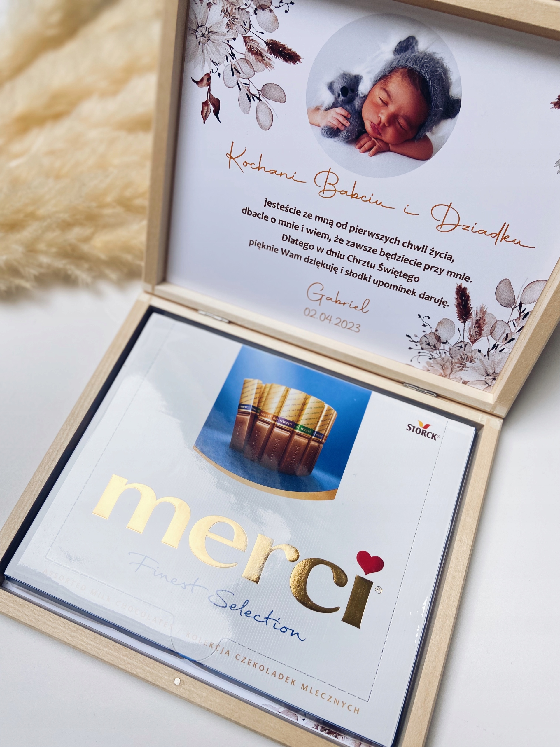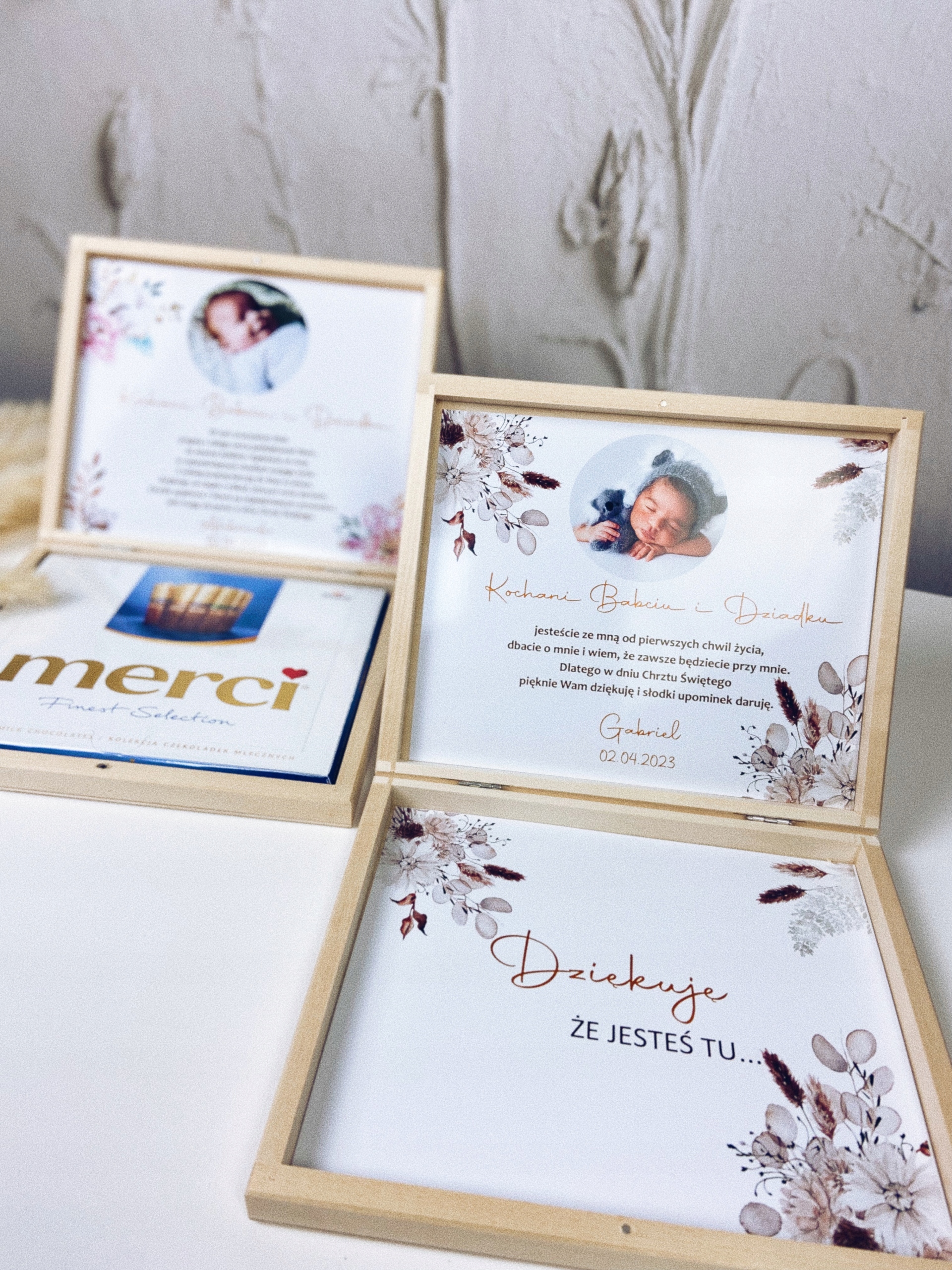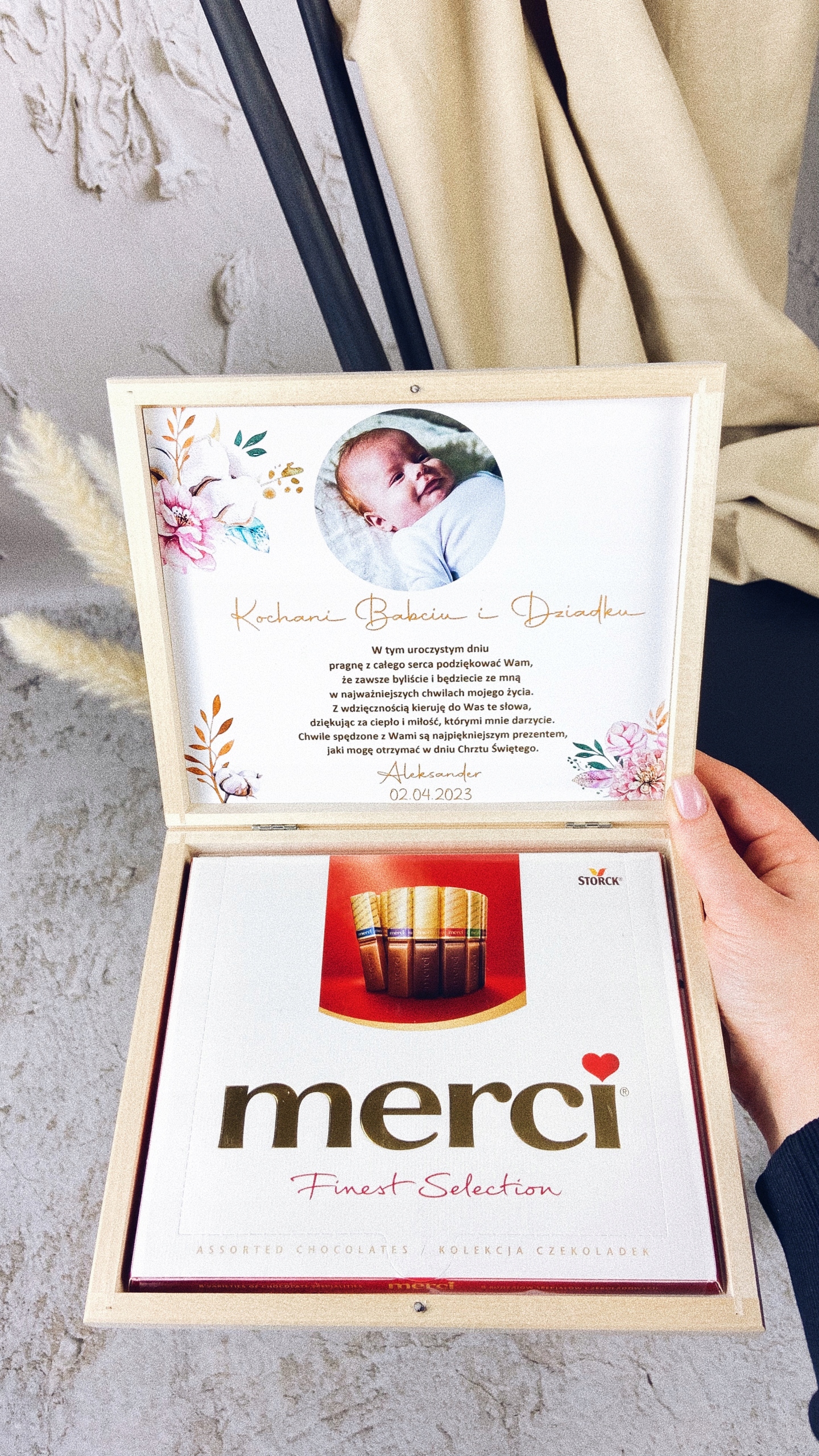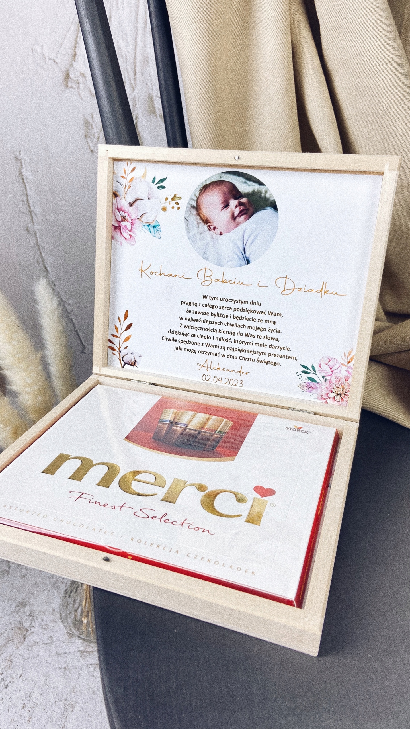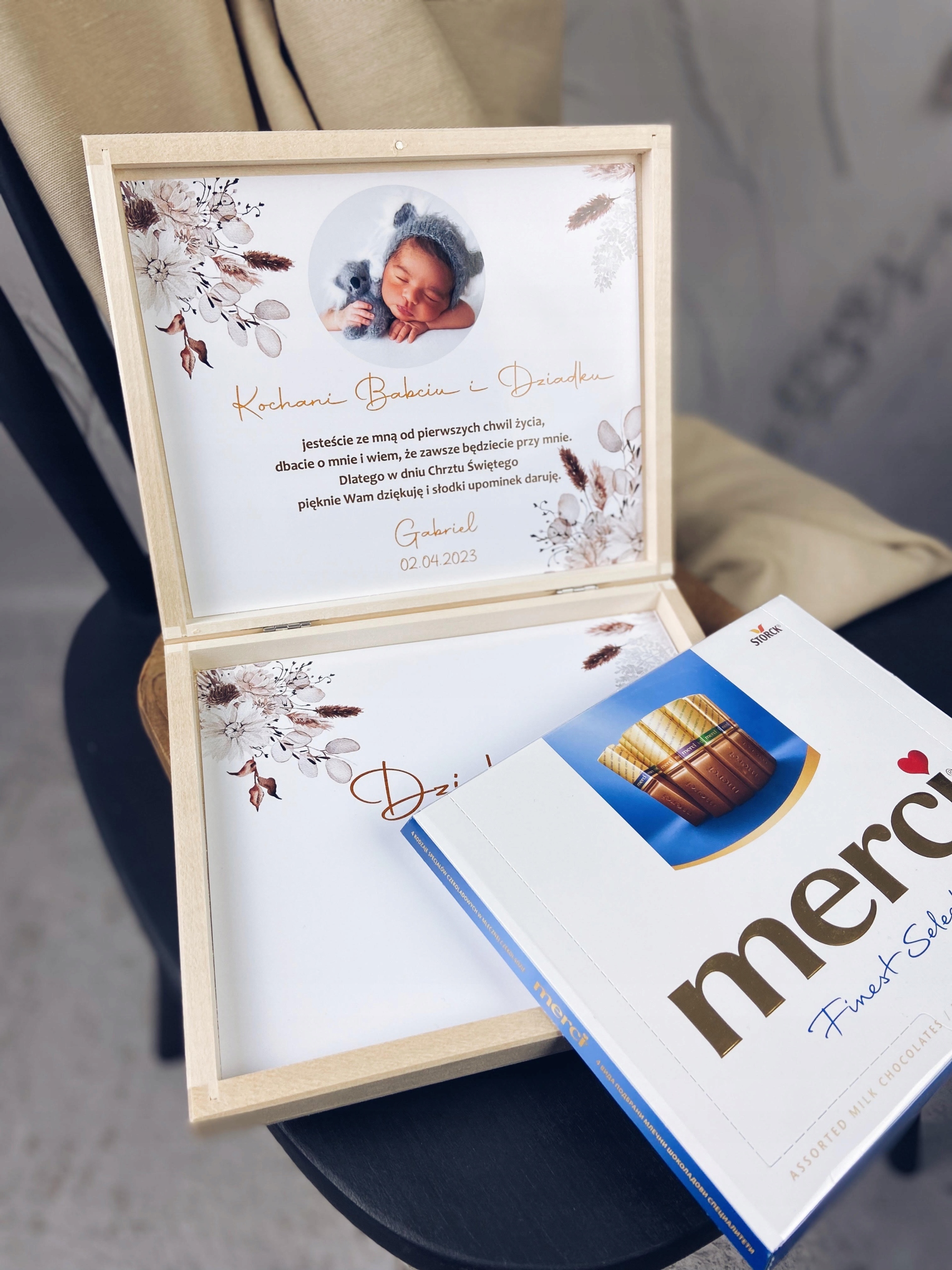 Деревянная персонализированная коробка с фотографией для шоколадных конфет.