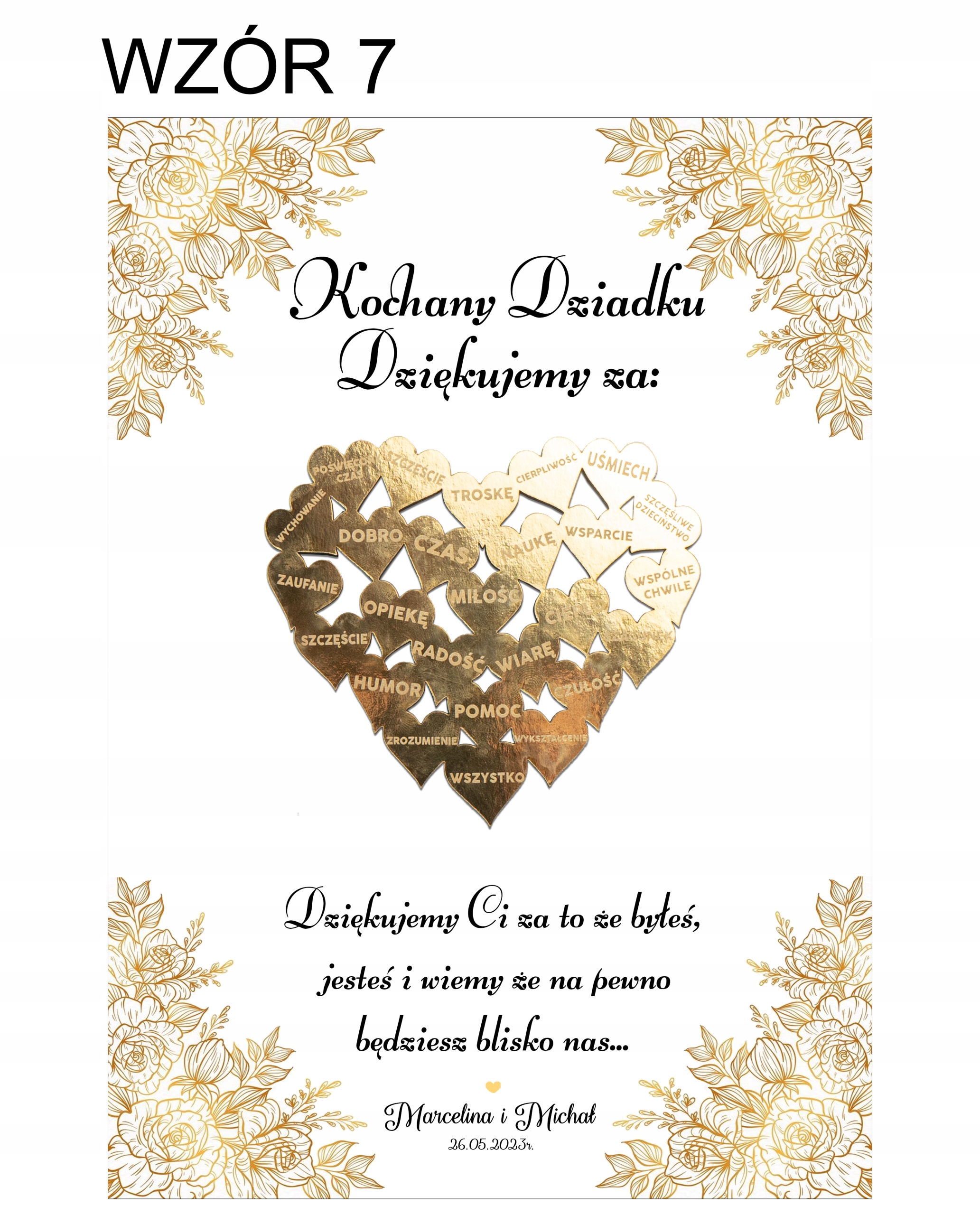 В центре рамки находится ЗОЛОТОЕ ЗЕРКАЛО СЕРДЦЕ 3D, состоящее из сердечек меньшего размера, на которых выгравированы слова благодарности.
