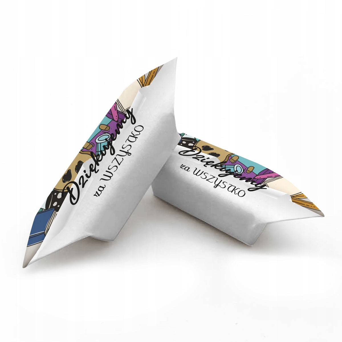 ✔️ 18 молочных помадок - каждая завернута в бумагу с разным готовым текстом благодарности