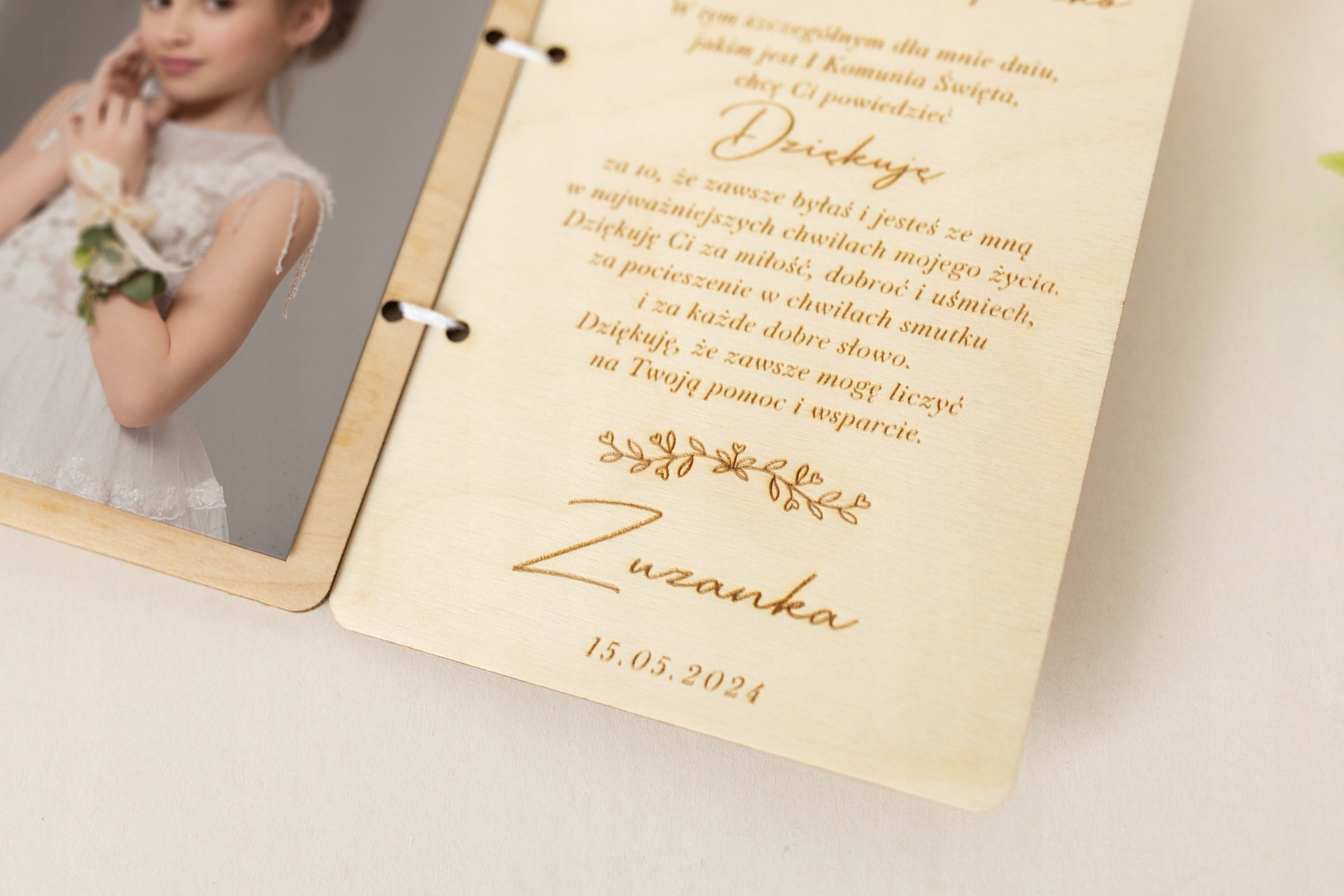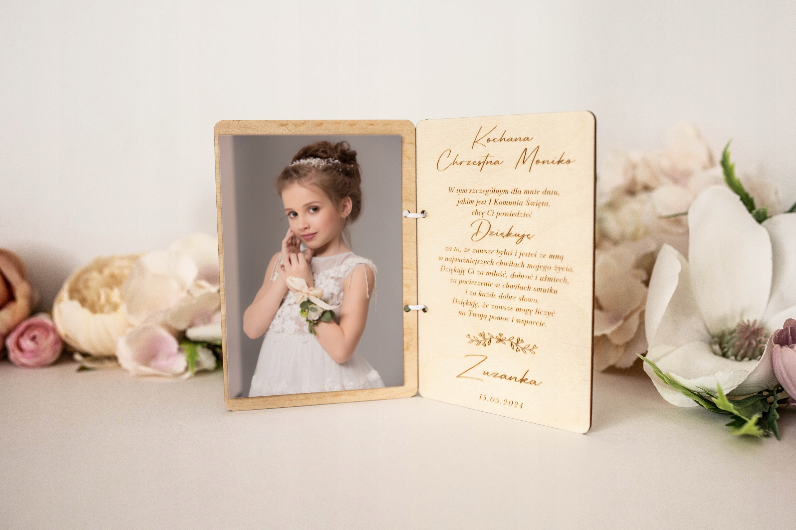 Спасибо крестным родителям в красивом буклете с золотым акцентом Фраза, для кого, имя ребенка и дата