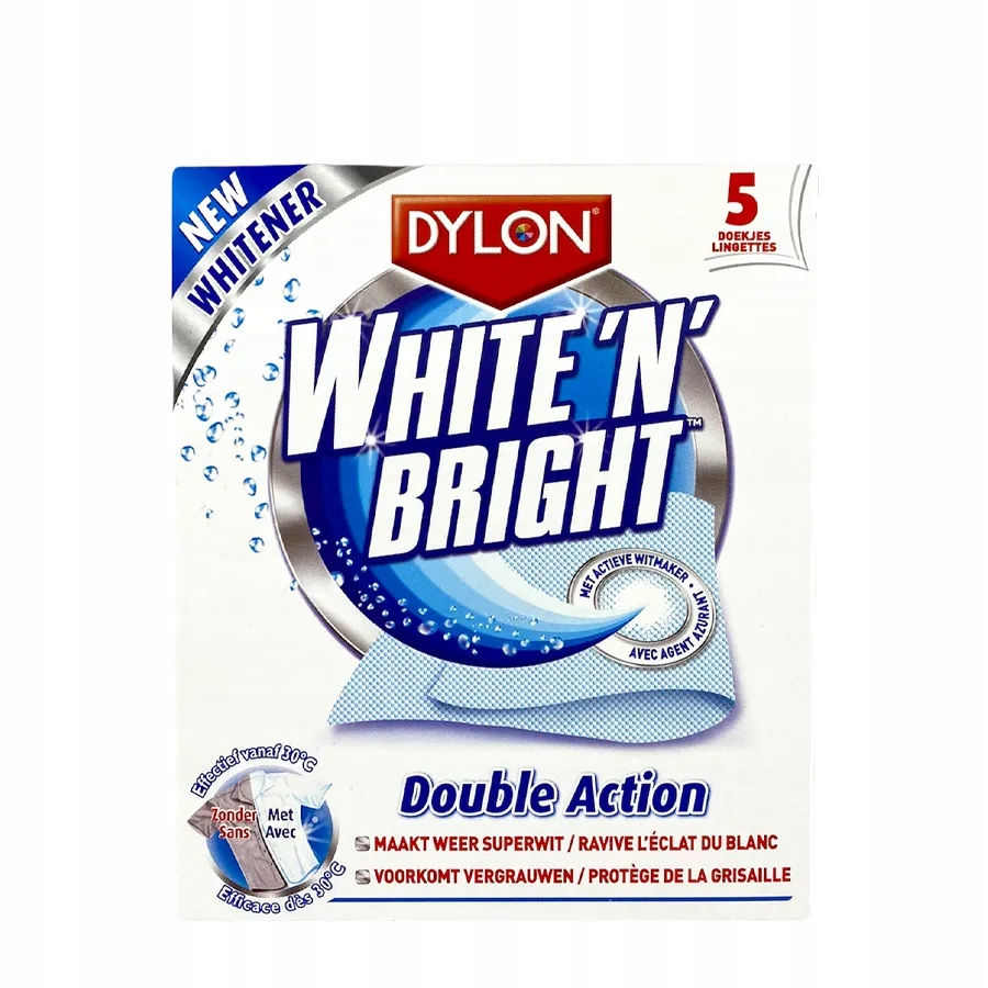 Dylon White Bright 5st — отбеливающие салфетки для стирки, которые эффективно восстанавливают белизну вашей одежды, удаляя серость, пятна и изменения цвета. Эти салфетки идеально подходят для машинной стирки, они просты в использовании — просто добавьте их в белье, чтобы улучшить внешний вид белых тканей. Благодаря своей инновационной формуле Dylon White Bright 5st не только отбеливает, но и защищает цвета, предотвращая их перенос на белую одежду.