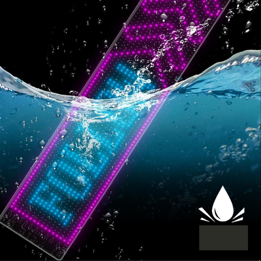 ✨[Гибкий экран с разноцветной подсветкой для защиты глаз]: Усиленное основание делает дисплей более прочным и устойчивым. Программируемый гибкий матричный экран изготовлен с использованием водостойкой клеевой технологии, которая устойчива к любым погодным условиям и обеспечивает долговечность. Можно использовать на открытом воздухе