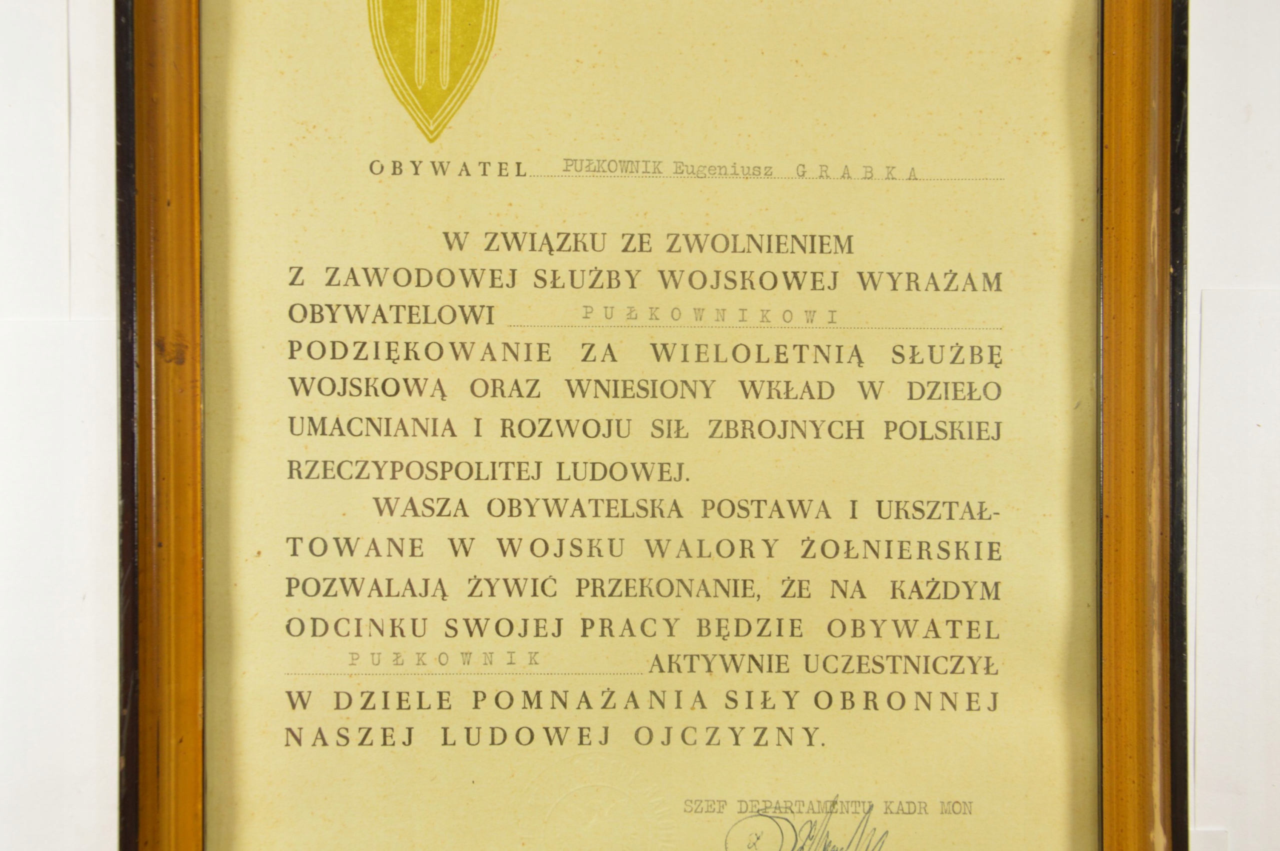 DYPLOM ZWOLNIENIE ZE SŁUŻBY PUŁKOWNIK 1981 r.
