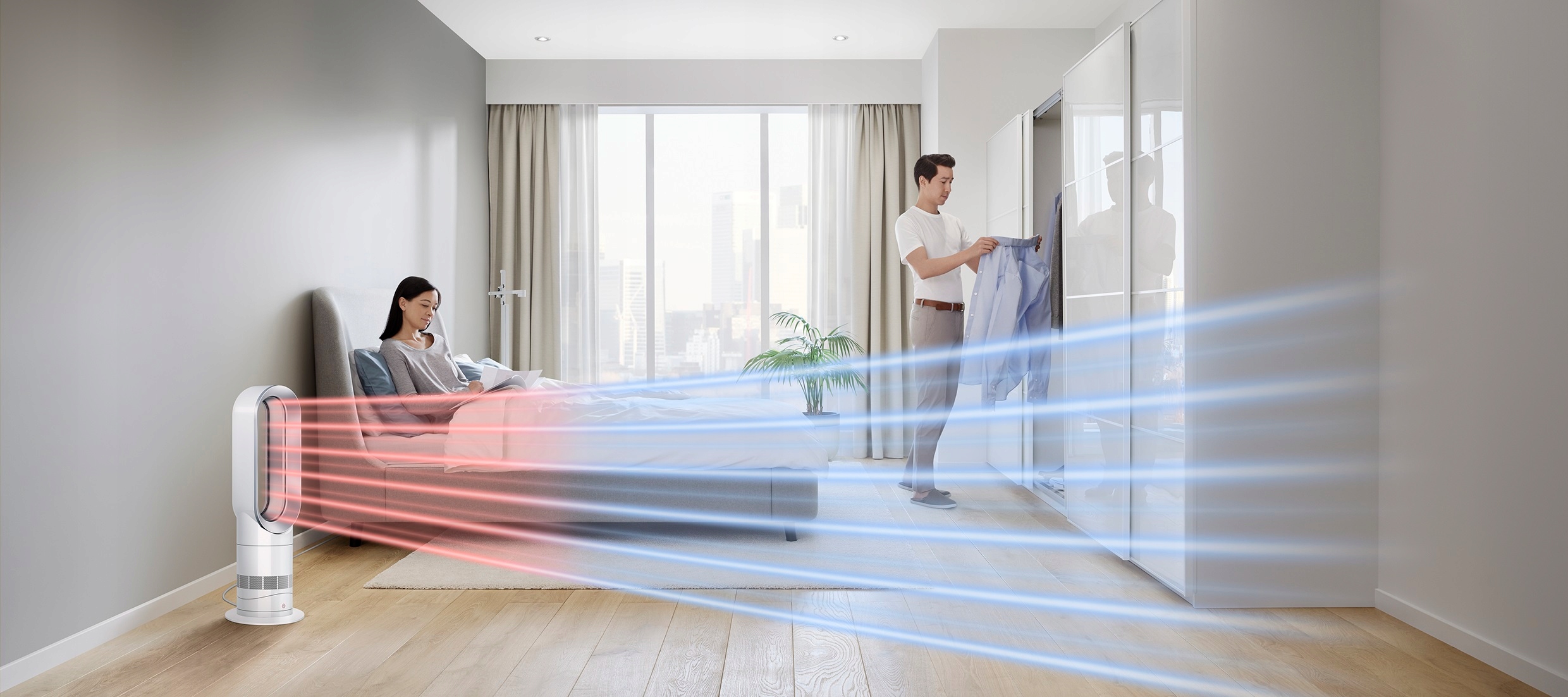 создает поток теплого воздуха для достижения и поддержания выбранной температуры в комнате.