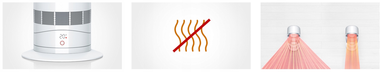Нагревательные элементы никогда не превышают 200 ° C, то есть температуру сжигания пыли. Устройство не производит неприятные запахи во время нагрева. манера, используя одну кнопку