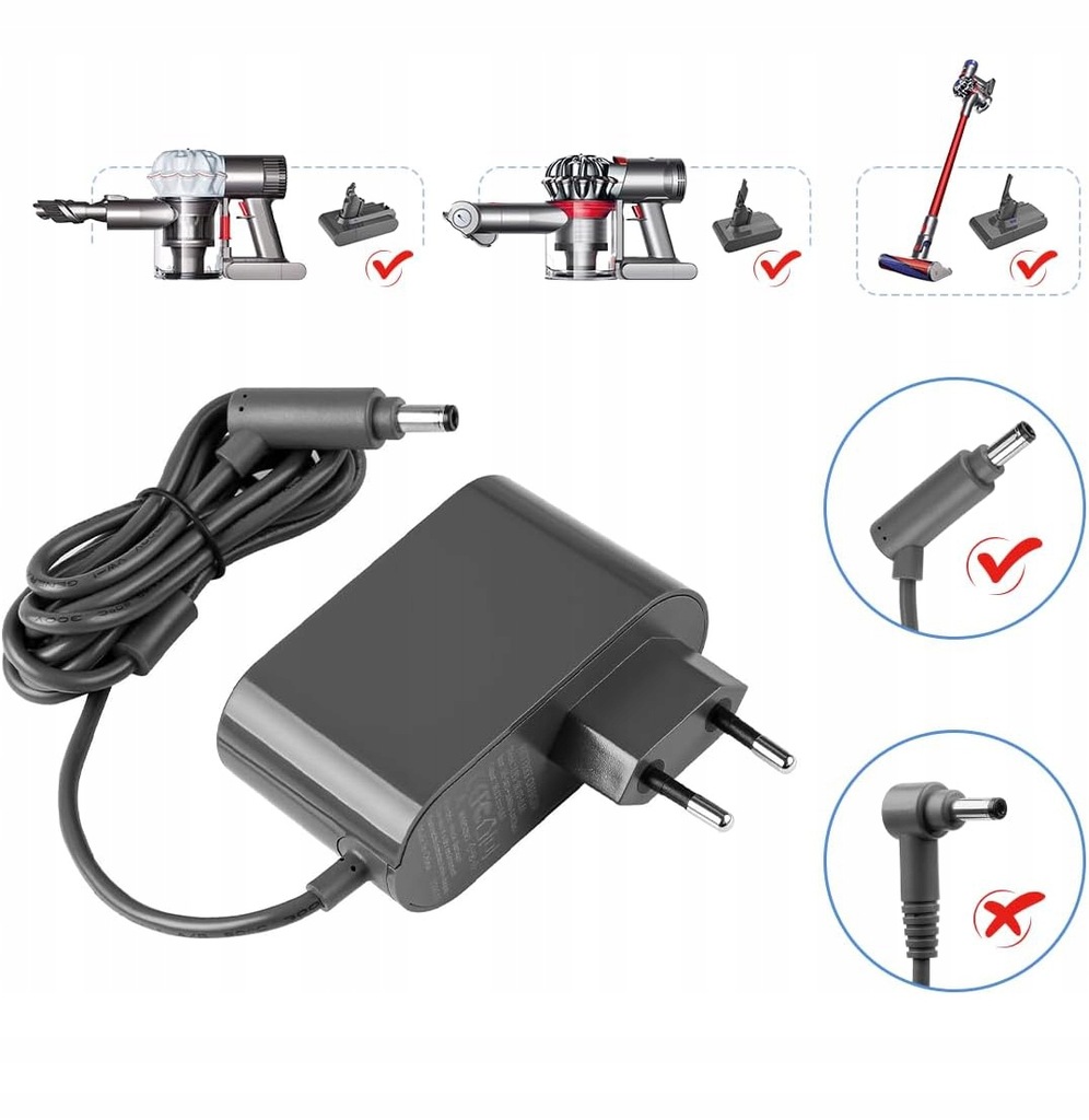 ⚡ten Высококачественное питание сети было разработано специально для моделей V6, V7 и V8. Zapewnia stabilne ładowanie, dzięki czemu twój odkurzacz Zawsze jest gotowy do użycia.
