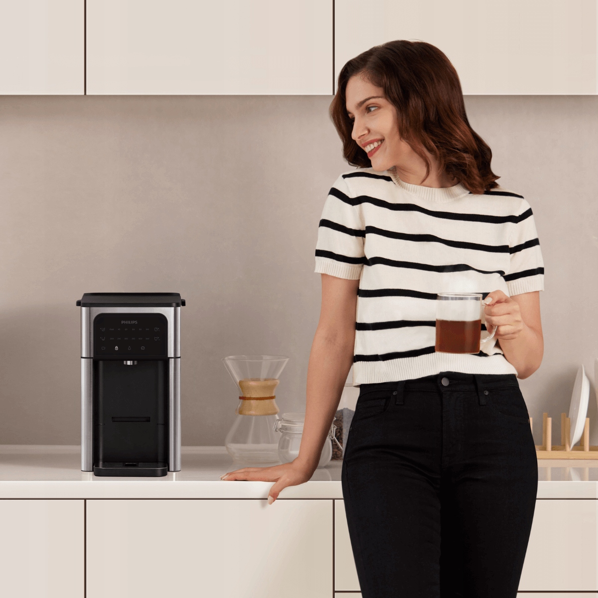 Откройте для себя современность и удобство с диспенсером для воды PHILIPS ADD5980S All-in-One. Наслаждайтесь идеально чистой водой, доступной как в освежающе-холодной, так и в согревающе-горячей версии — идеальной для приготовления чая или кофе.
