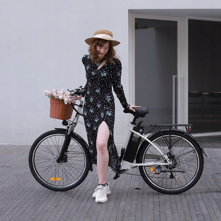 Электрический велосипед DYU C6 — идеальное решение для взрослых женщин и пожилых людей, которые ищут доступный электрический велосипед, сочетающий в себе великолепный дизайн и современные технологии. Железная рама, 26-дюймовые колеса, электроусилитель руля с мощным двигателем, высококачественные шестерни Shimano и очень долговечный аккумулятор делают его лучшим выбором для данного типа автомобиля на рынке.
