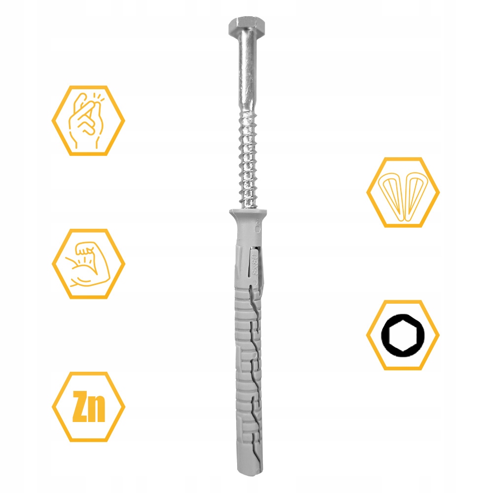Каркасные дюбели 8x80 с шестиугольной головкой SW-10 KLIMAS 50 PCS