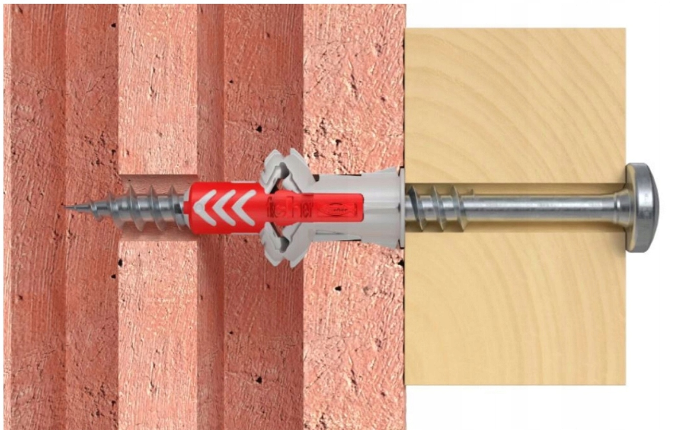 - Увеличенная глубина крепления в В случае с дюбелями DUOPOWER 6 x 50, 8 x 65 и 10 x 80 дюбель особенно подходит для монтажа в пустотелый кирпич, газобетон и оштукатуренные стены.