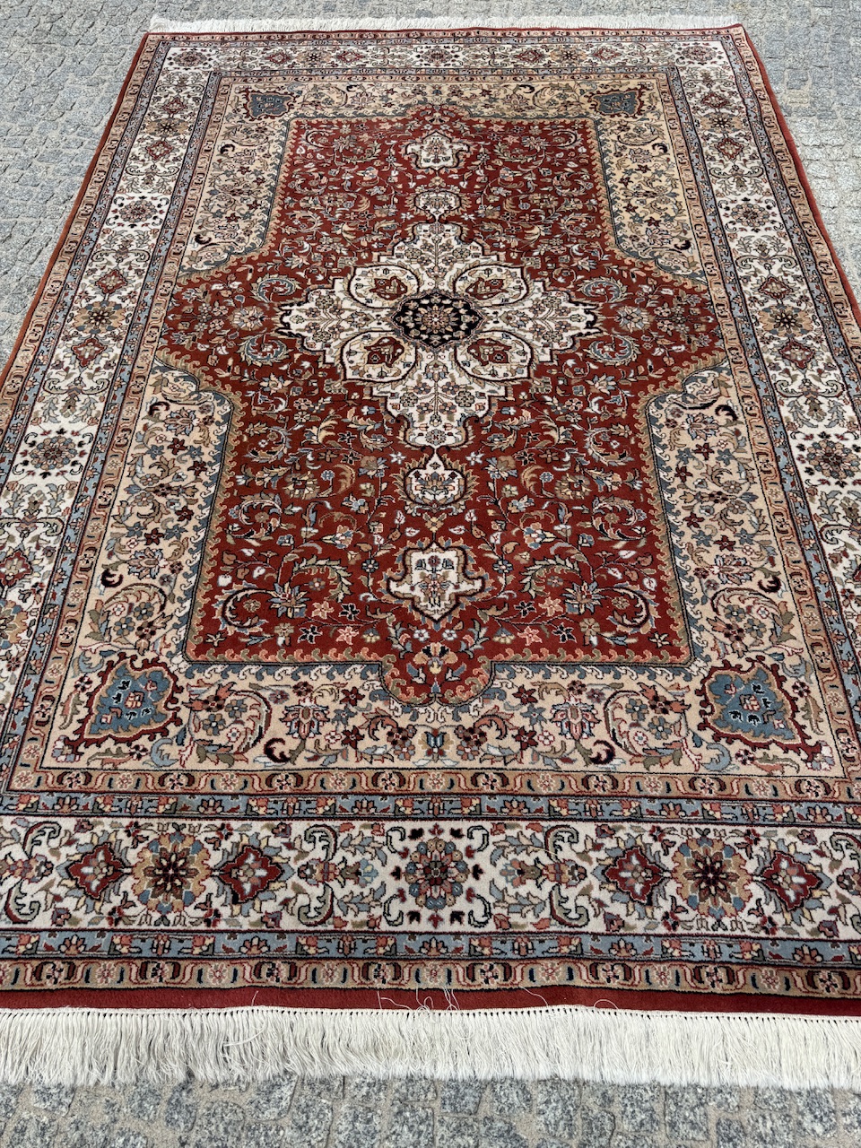 Предмет: Персидский ковер ручной работы Indo Ghum. Имеется бирка под ковриком + бумажный сертификат по запросу. В галерее до продажи она стоила 6000 евро, или около 25 000 злотых. Она уникальна своим дизайном. Ковер очень высокого качества.