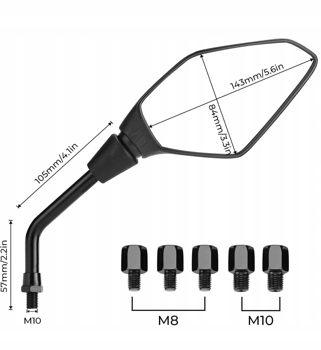 - Гомологические мотоциклетные зеркала оснащены 5 адаптерами зеркал (2 x 10 мм, 3 x 8 мм) и 2 x 22 -мм терминалами, благодаря которого они подходят для большинства мотоциклов или велосипедов, таких как MT07, 09, R1200, Z800 и 900. Определяют упорт вверх или боковые шлюзы, а также упорные для оптимального.