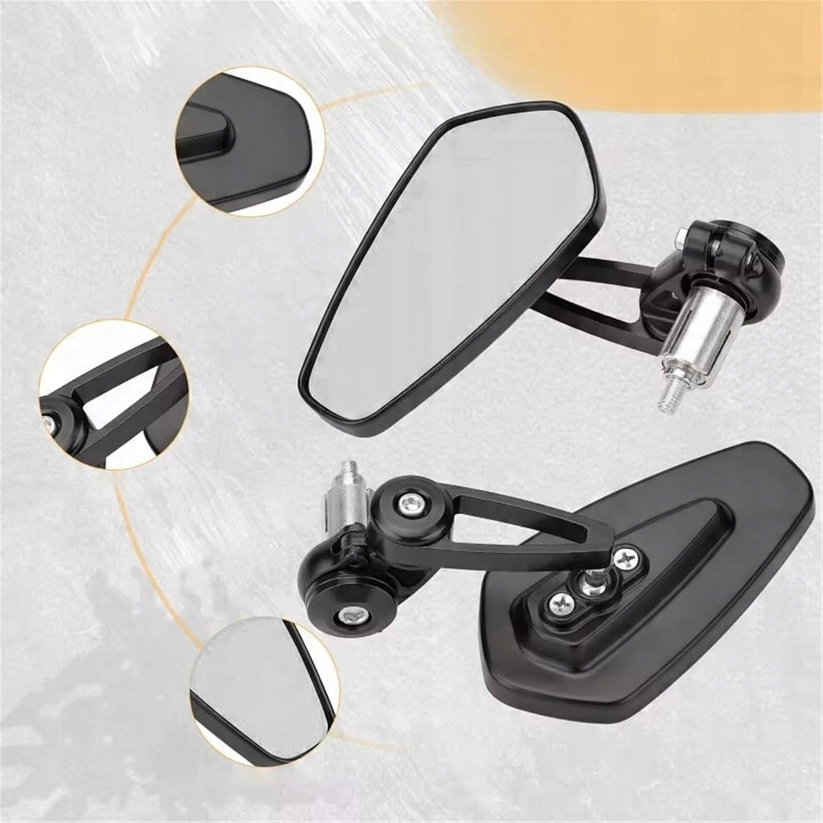 【Полностью регулируемое】Зеркало на руле имеет угол обзора 360 градусов для всех ваших нужд. Это боковое зеркало для мотоцикла позволяет настроить его под идеальным углом для наилучшего положения при езде.