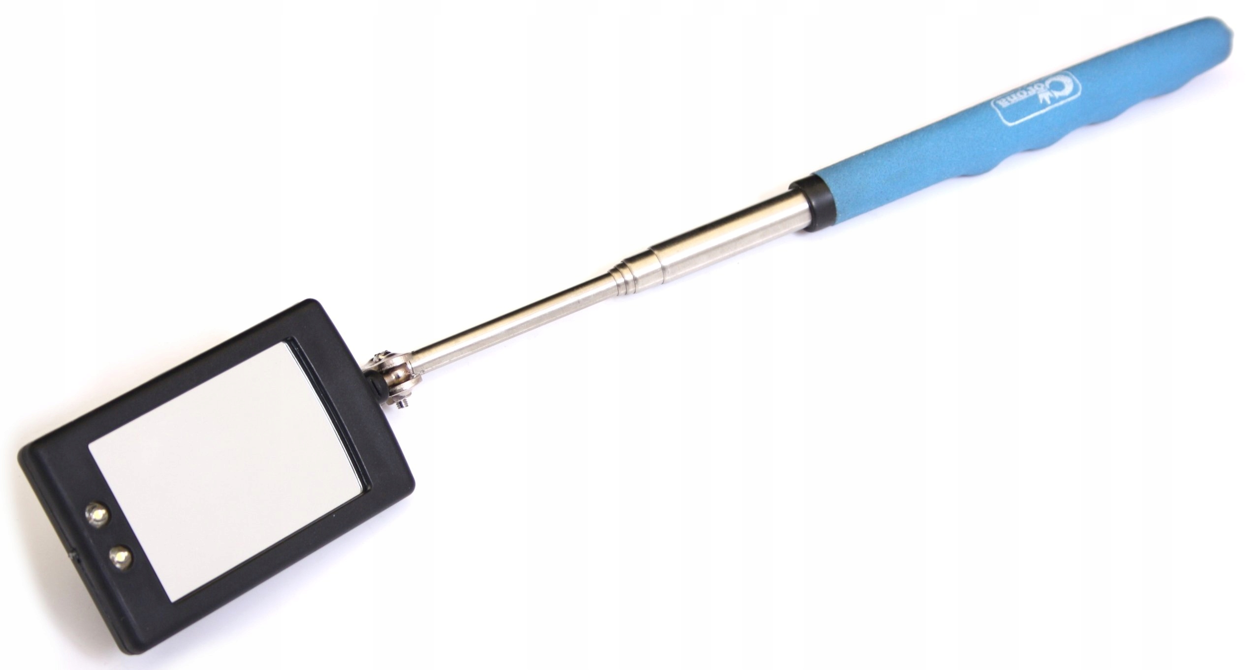 Прямоугольная проверка зеркала с размерами 80 х 50 мм. Регулировка длины телескопа в диапазоне 280-670 мм. Он имеет светодиодную лампу. Зеркало, установленное на телескопической стрелке, изготовленное из стального листа толщиной 0,6 мм. Продукт полезен на каждом механическом и автомобильном заводе, позволяет просматривать недоступные, скрытые элементы автомобильной конструкции, машин, мебели и т. Д.