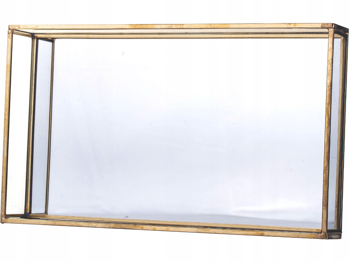 - Прямоугольный поднос с металлическим каркасом, боковинами из прозрачного стекла и зеркальным дном.