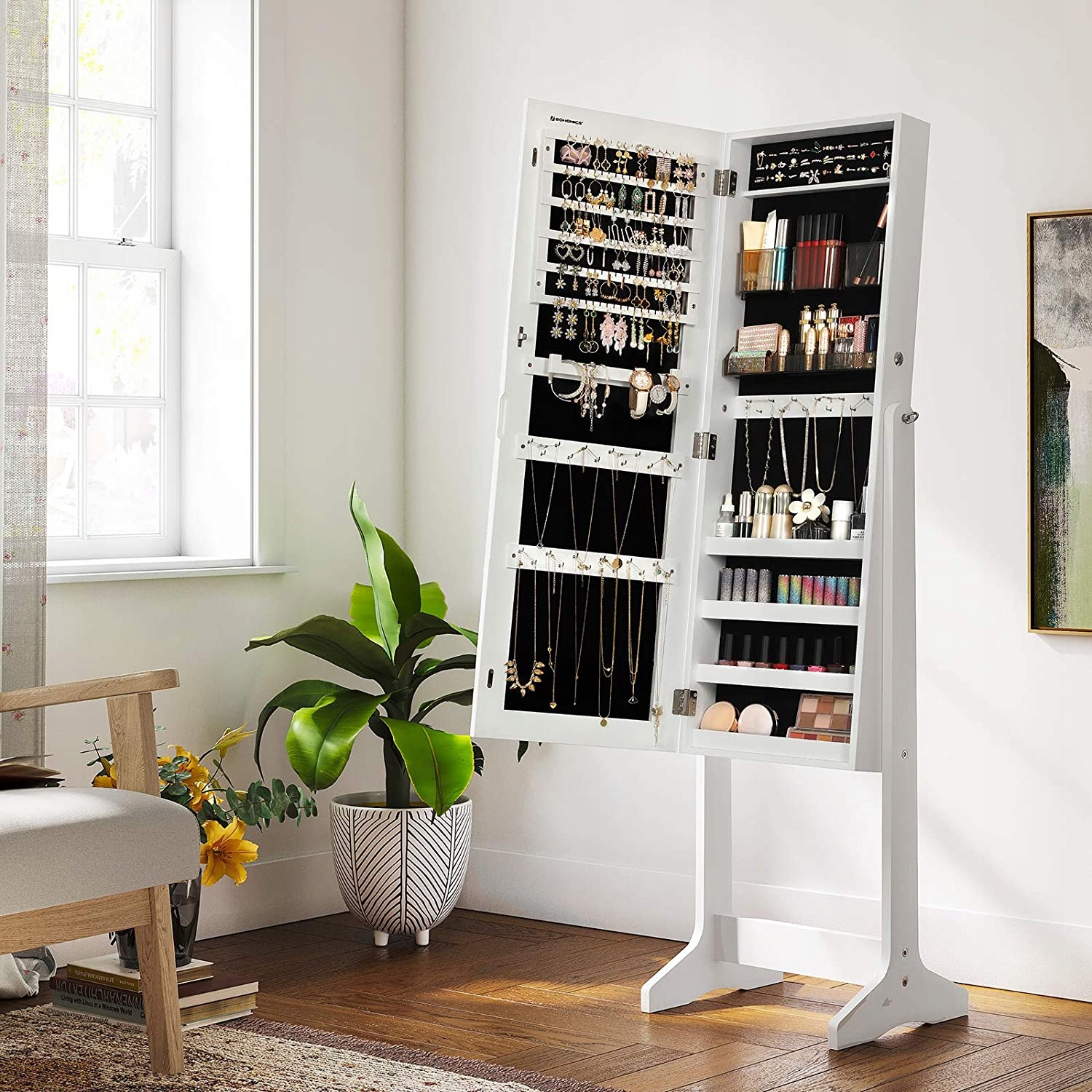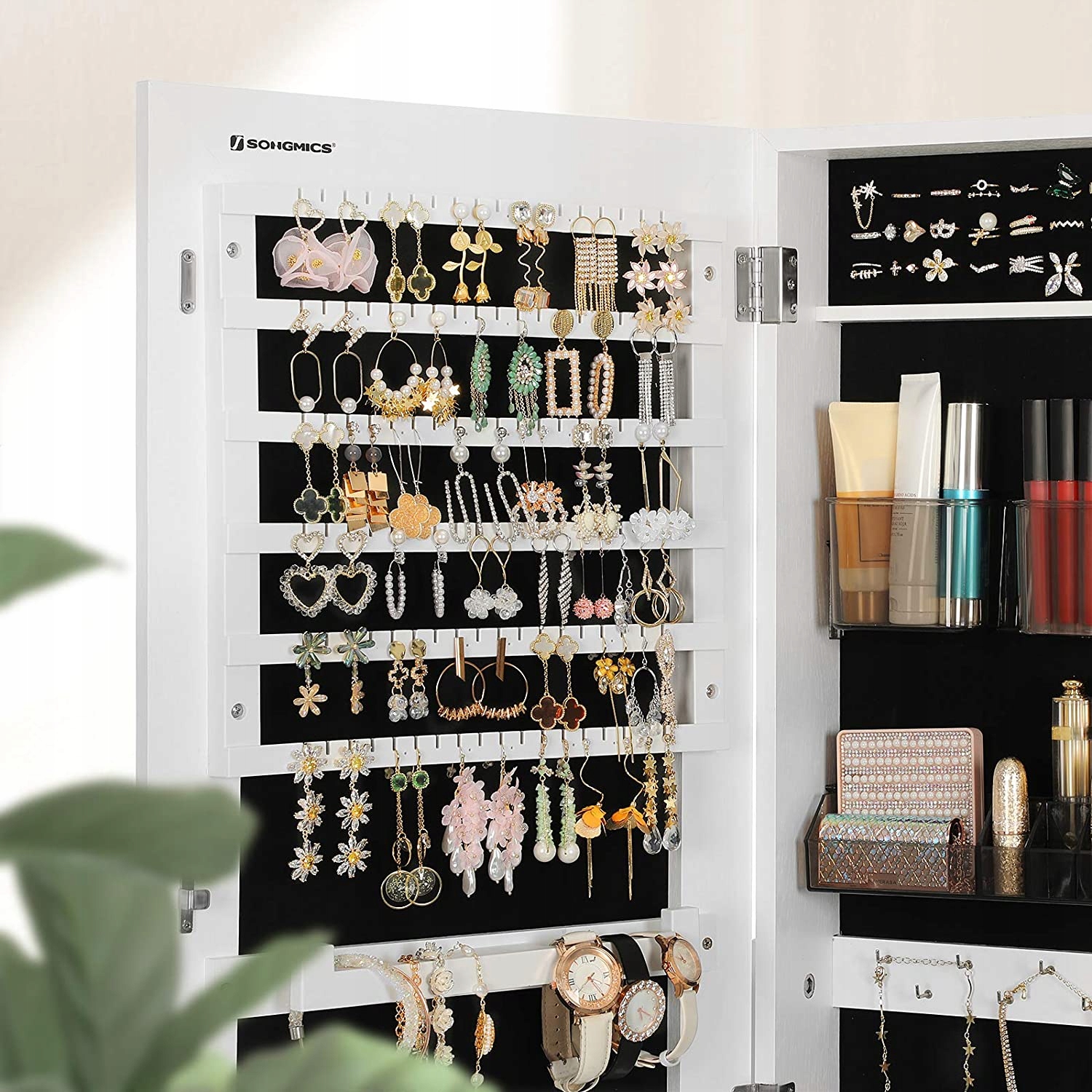Элегантное и функциональное зеркало - шкаф для ювелирных изделий и косметика макияжа - он идеально подходит для спальни, шкафов, ванной комнаты или коридора. Макияж, лаки для ногтей, духи или кисточки для макияжа: