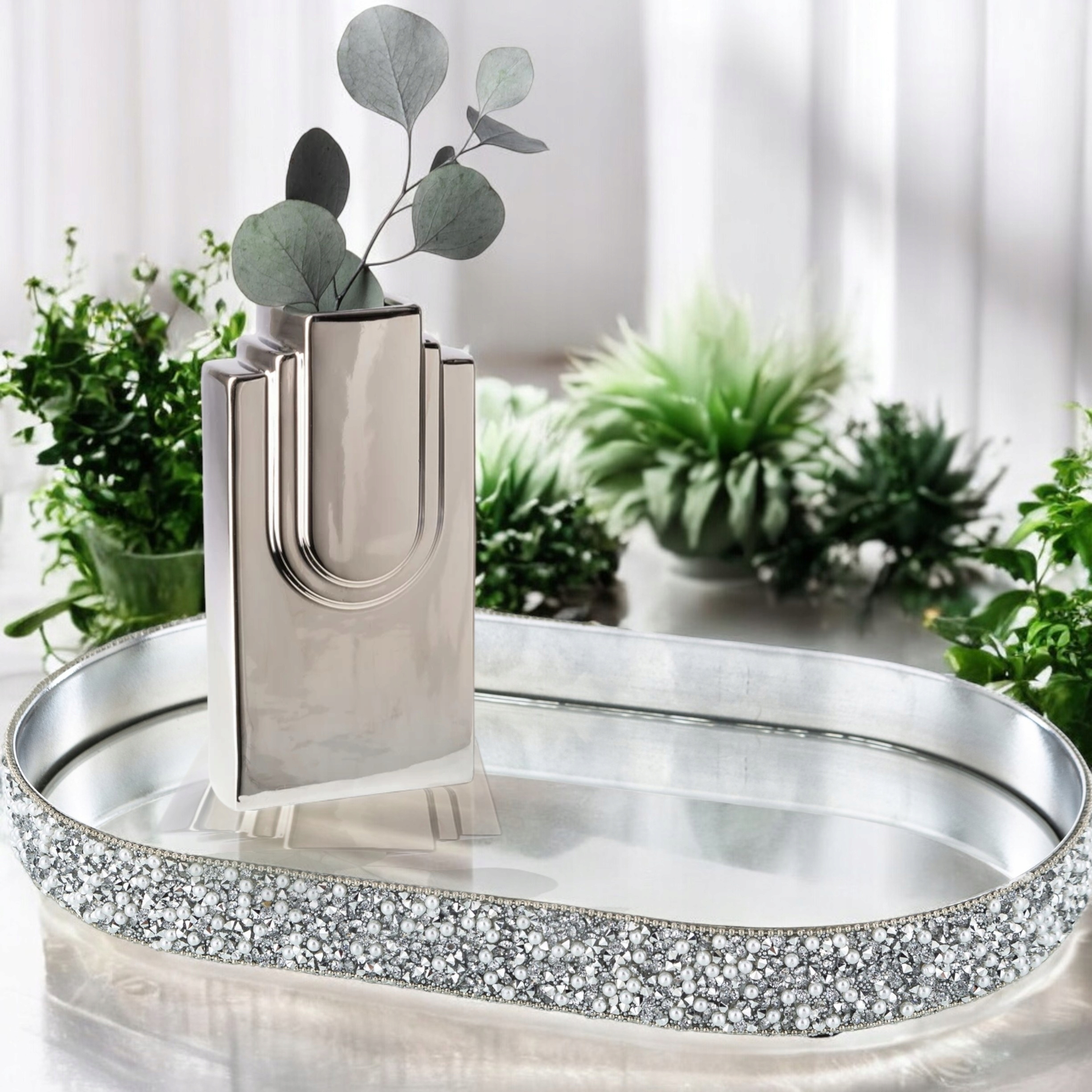 Зеркальный стеклянный поднос декоративные овальные кристаллы 20x12 Стекло