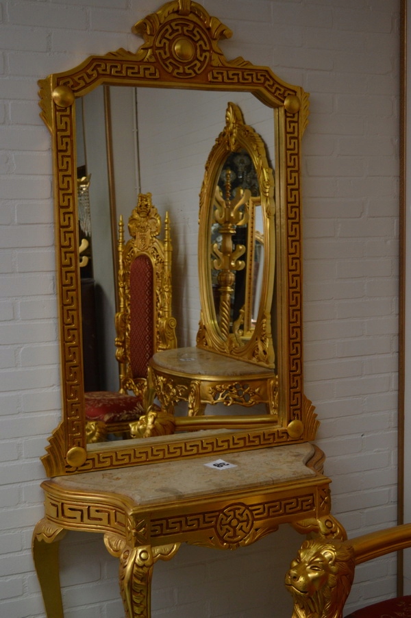 Здравствуйте, сегодня я хотела бы предложить вам невероятно золотистое резное хрустальное зеркало в красивой деревянной раме с консолью - все из дерева. Столешница консоли из мрамора, очень добротная работа.