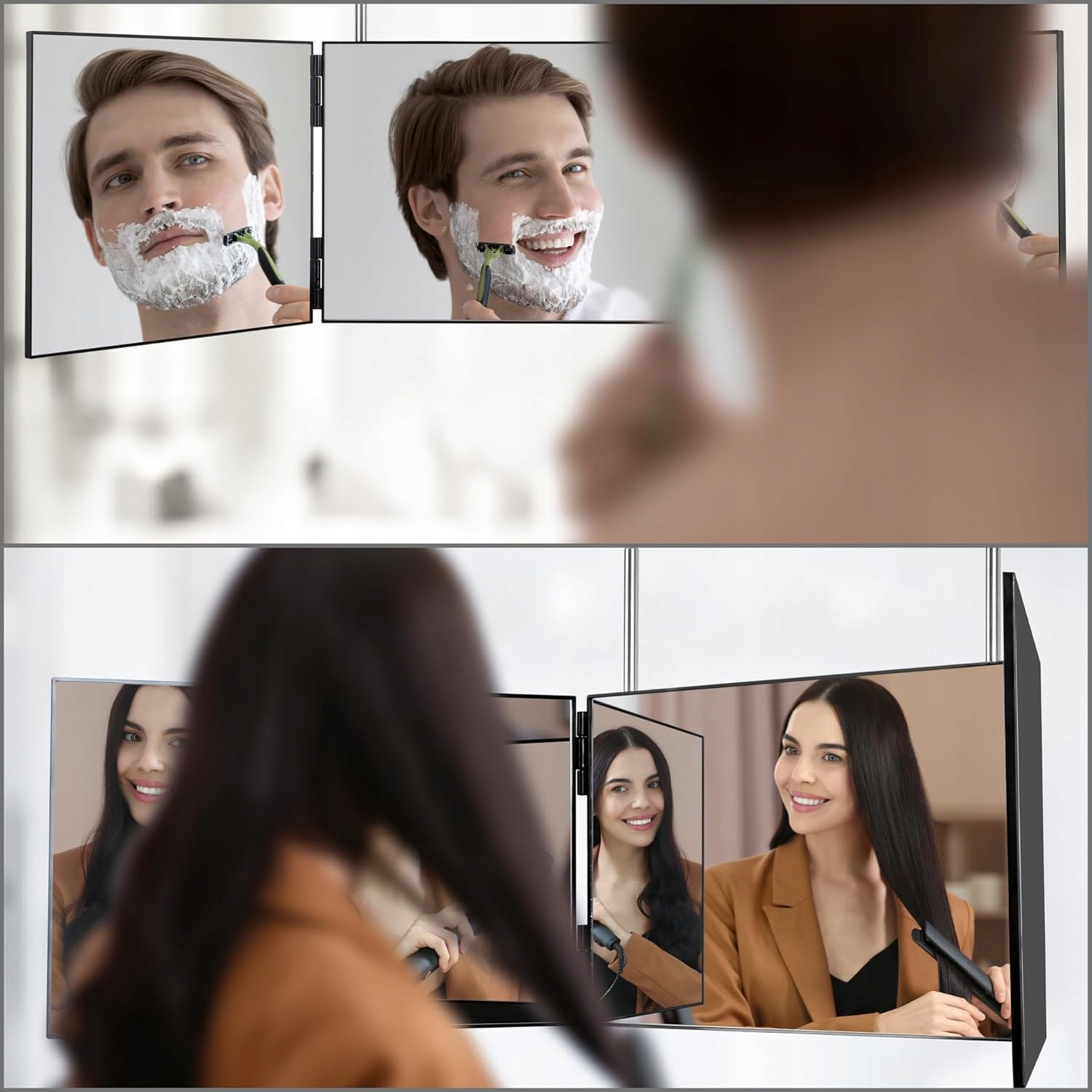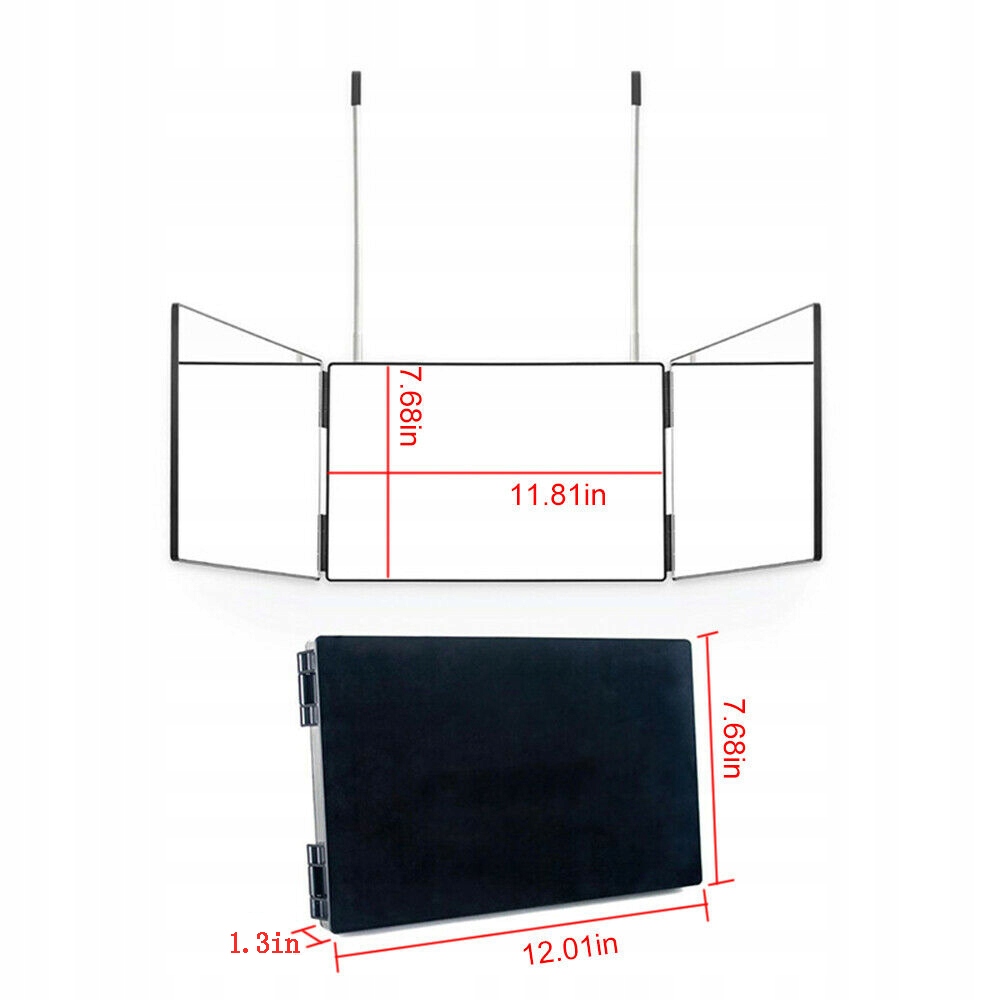 - Трехсторонний дизайн, поэтому вы можете легко видеть заднюю и боковые части головы. Просто повесьте, потяните и раскройте, легко брать и использовать.