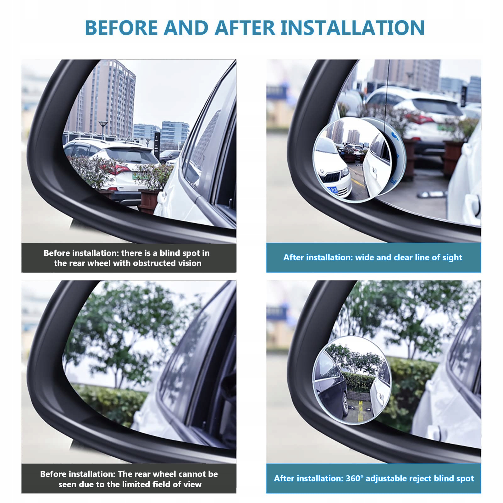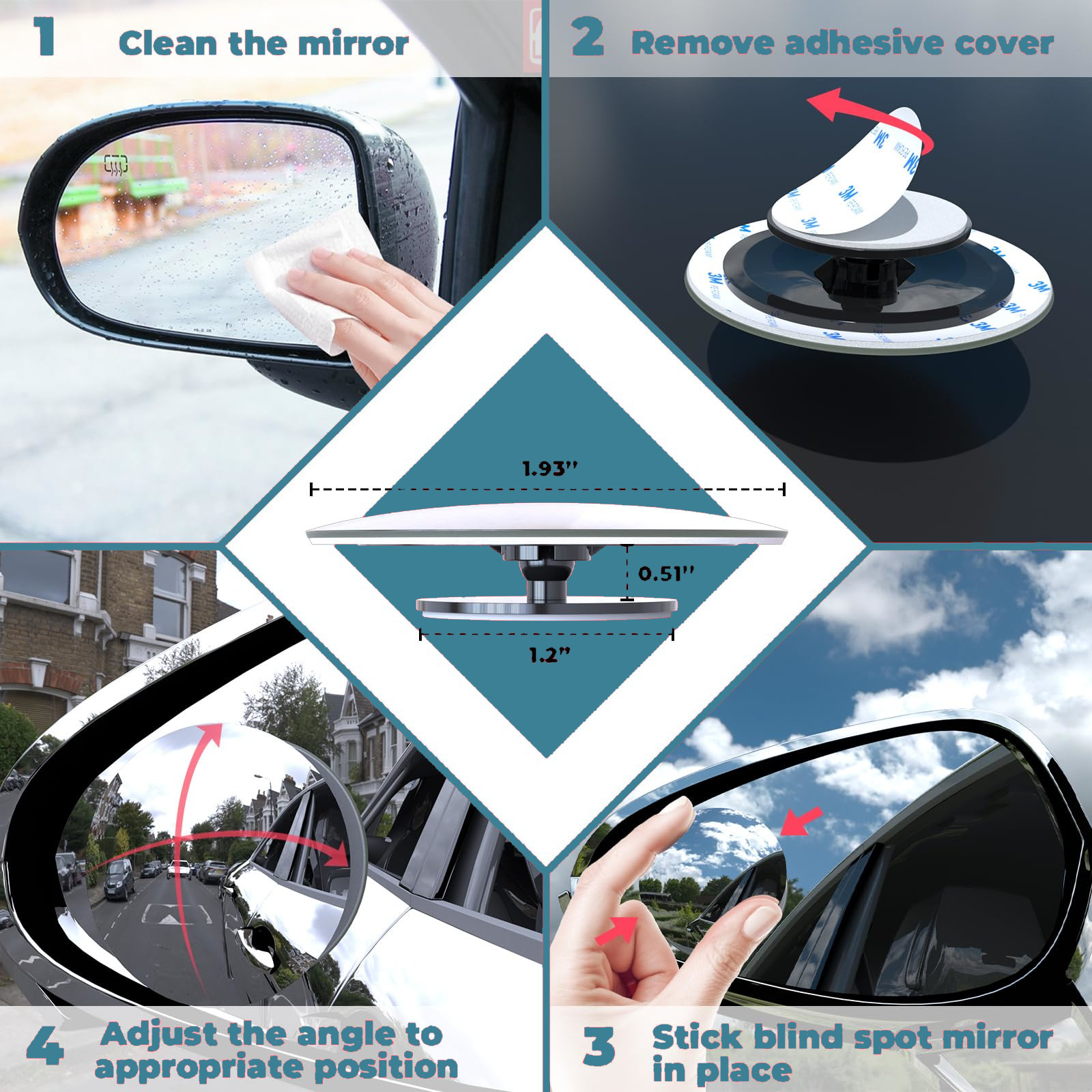 【Набор из 4 автомобильных зеркал Устранение мертвого поля】 hd стекло, круглый, безрамный, выпуклый зеркал, ультрафанная конструкция, стабильный клей, вращение 360 ° и регулируемый угол наклона 30 ° для Люди с различной высотой > Он остается на месте в жаркую погоду, проливные дожди, мороз или другие трудные погодные условия и т. Д. > 【Спасатель】 Выпуклое зеркало может максимизировать видимость водителя, что полезно при парковке спины, изменяйте ремень на шоссе, проверяя, есть ли другие автомобили и многие другие действия на обочине дороги. Это также определенно помогает ночью, если у вас астигматизм. Новые водители должны иметь их. Зеркало и ручка на месте, слегка нажимающие, и последние наклейки на слезы приклеивают в нужном месте